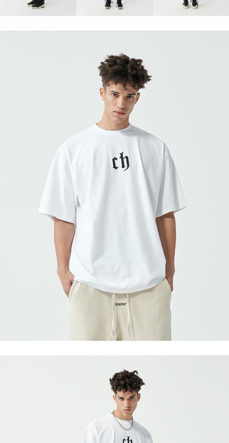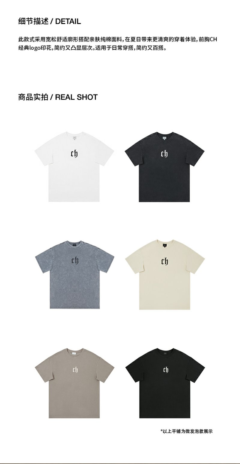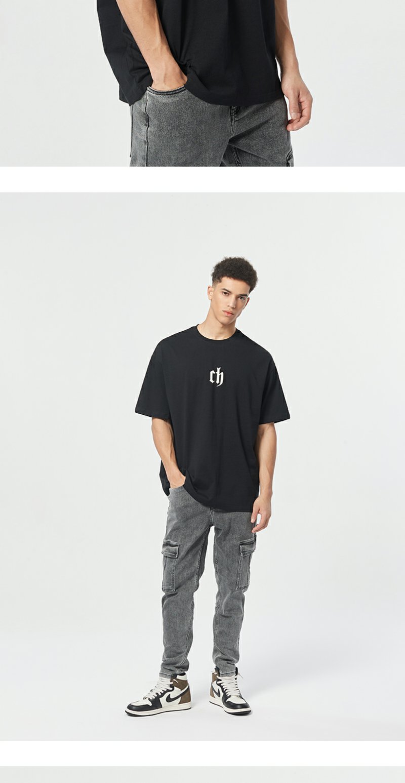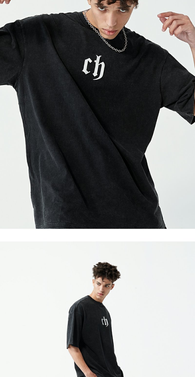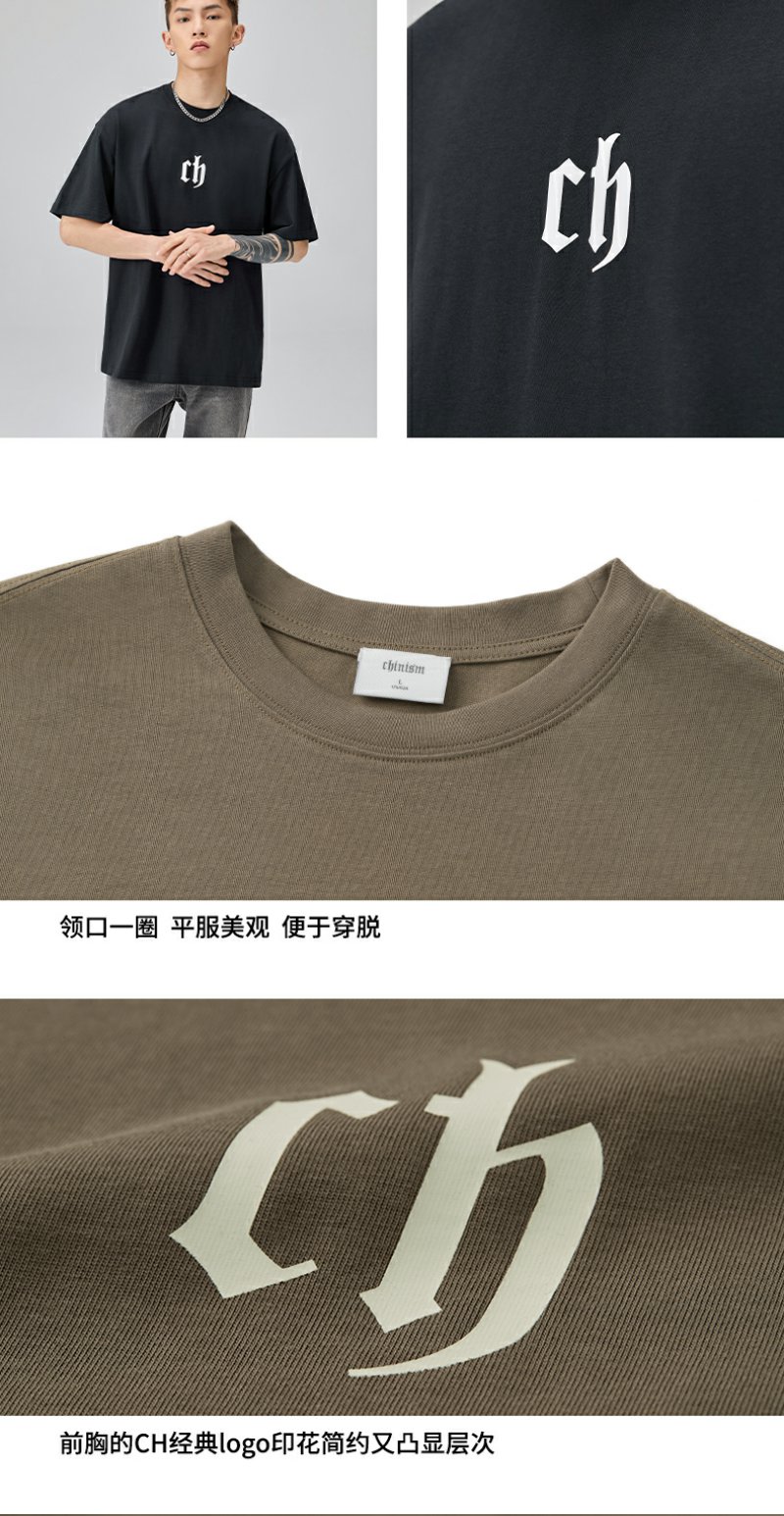 【胡可】CHINISM CH美式短袖t恤男水洗黑色宽松纯棉夏季半袖