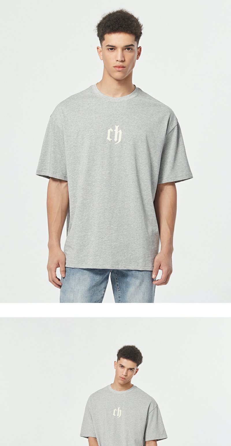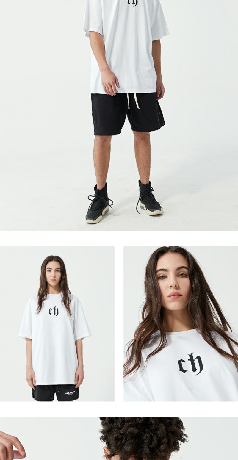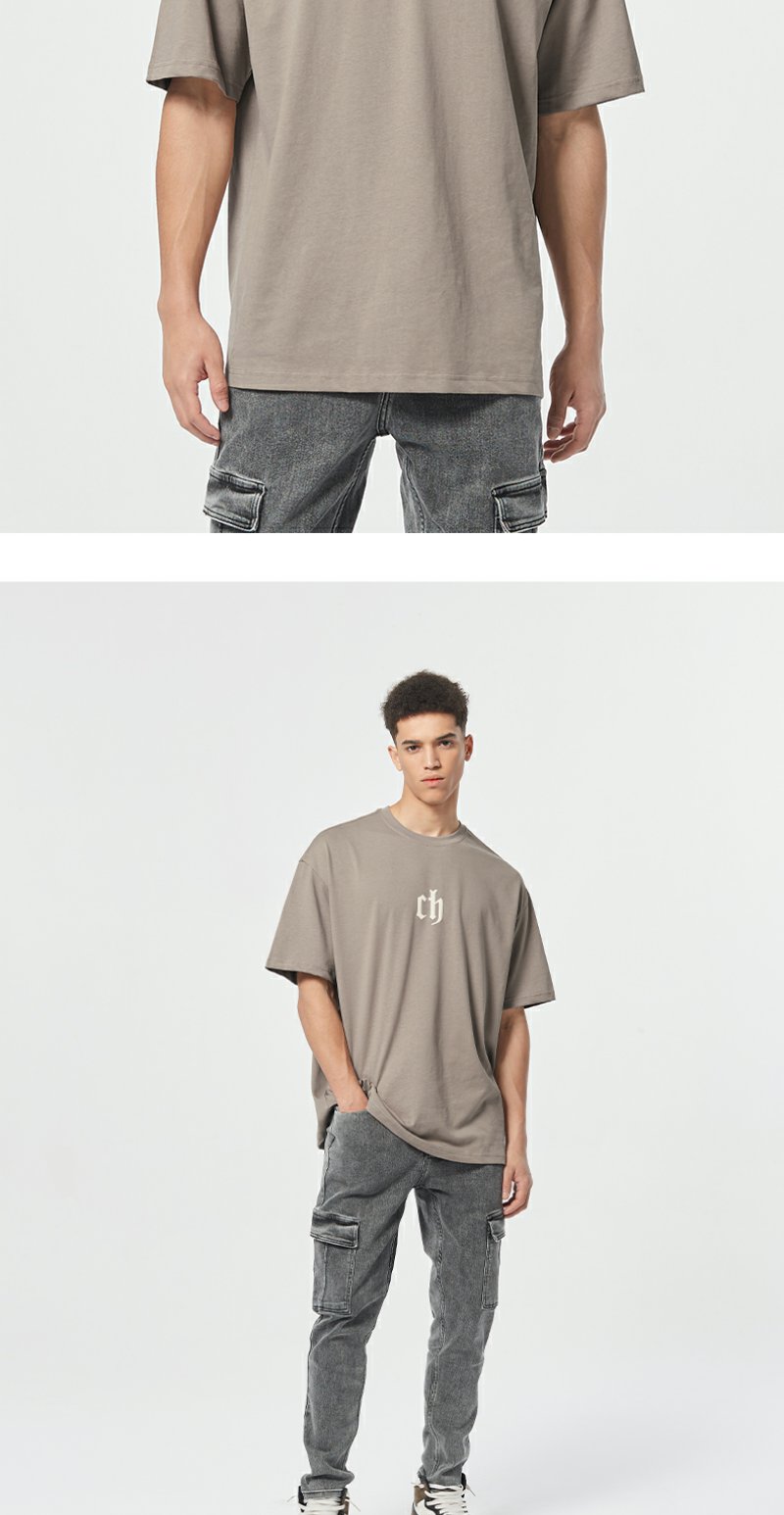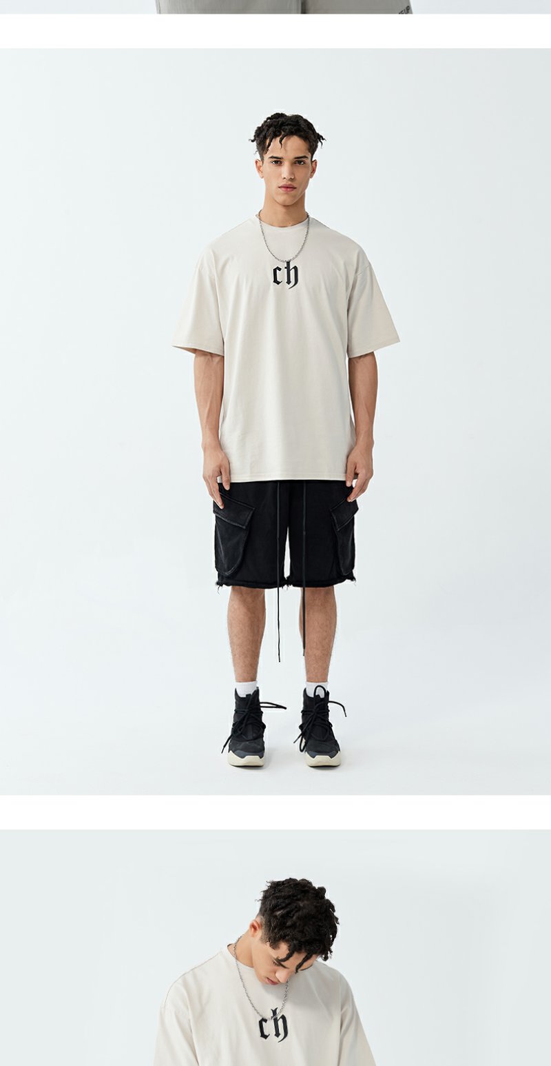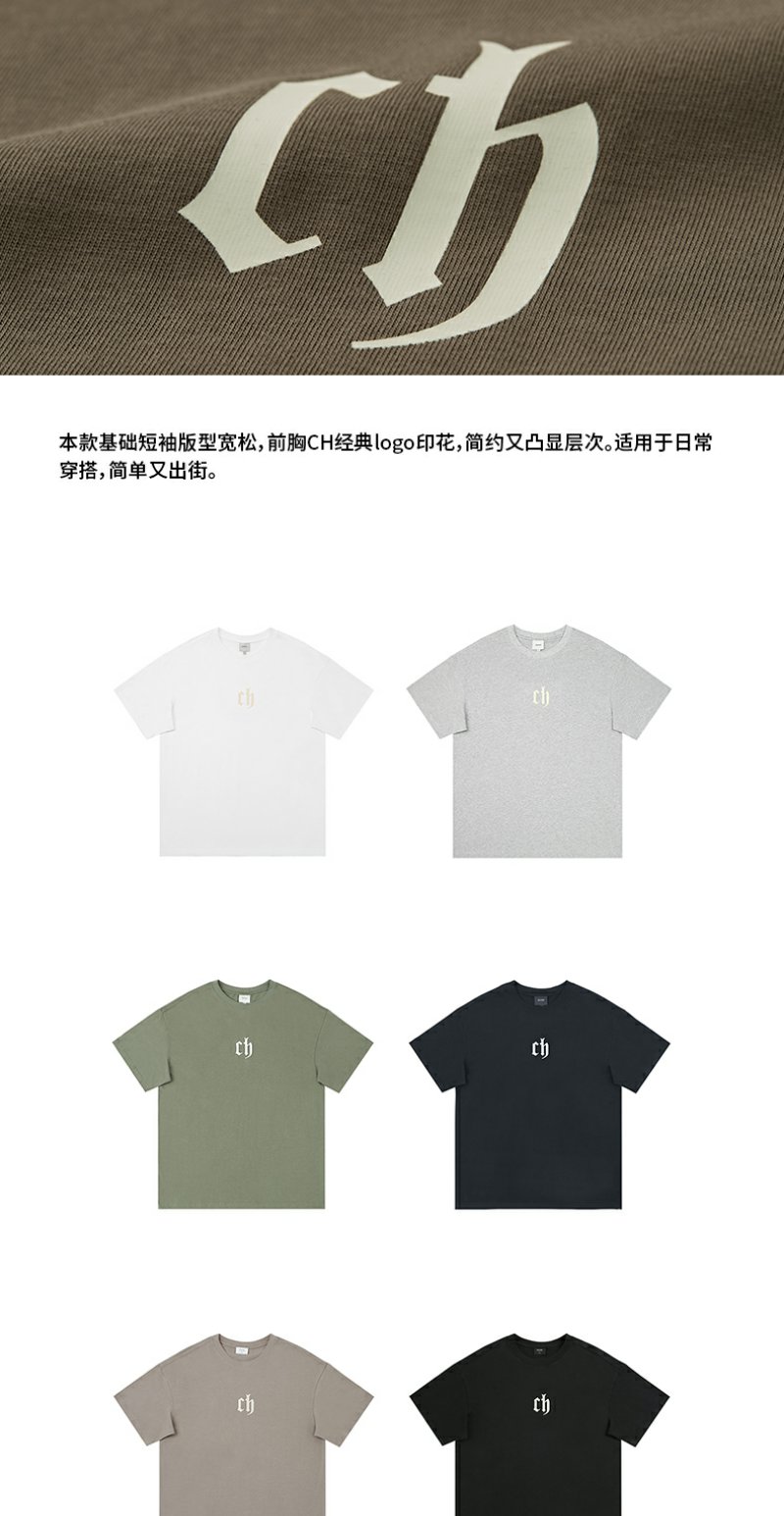 【胡可】CHINISM CH美式短袖t恤男水洗黑色宽松纯棉夏季半袖