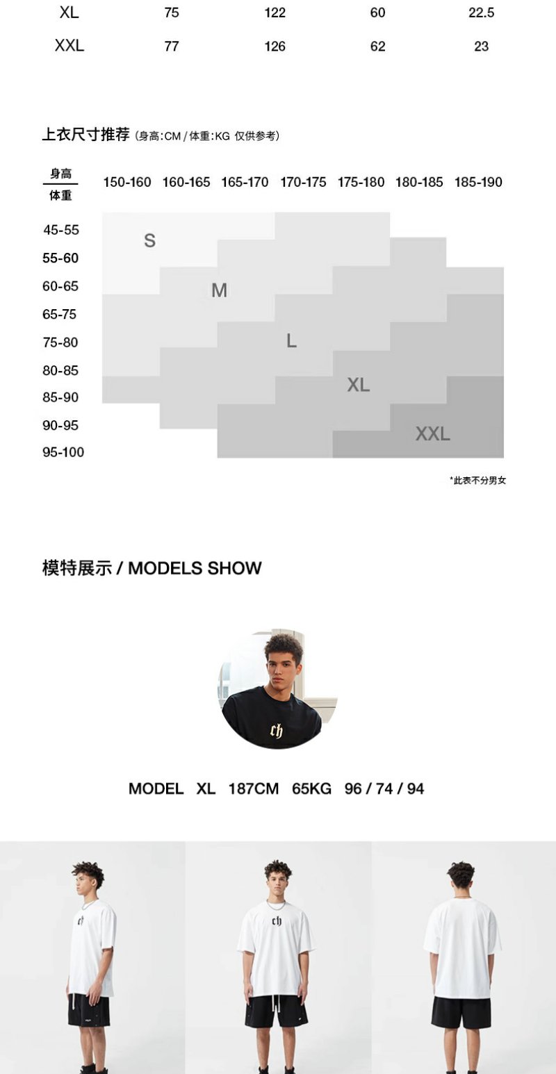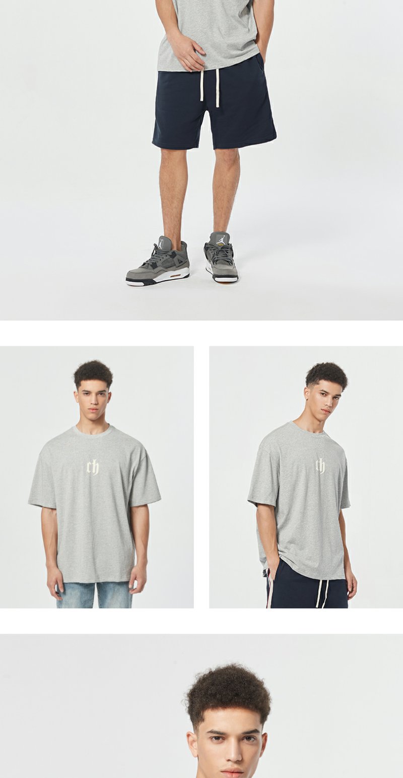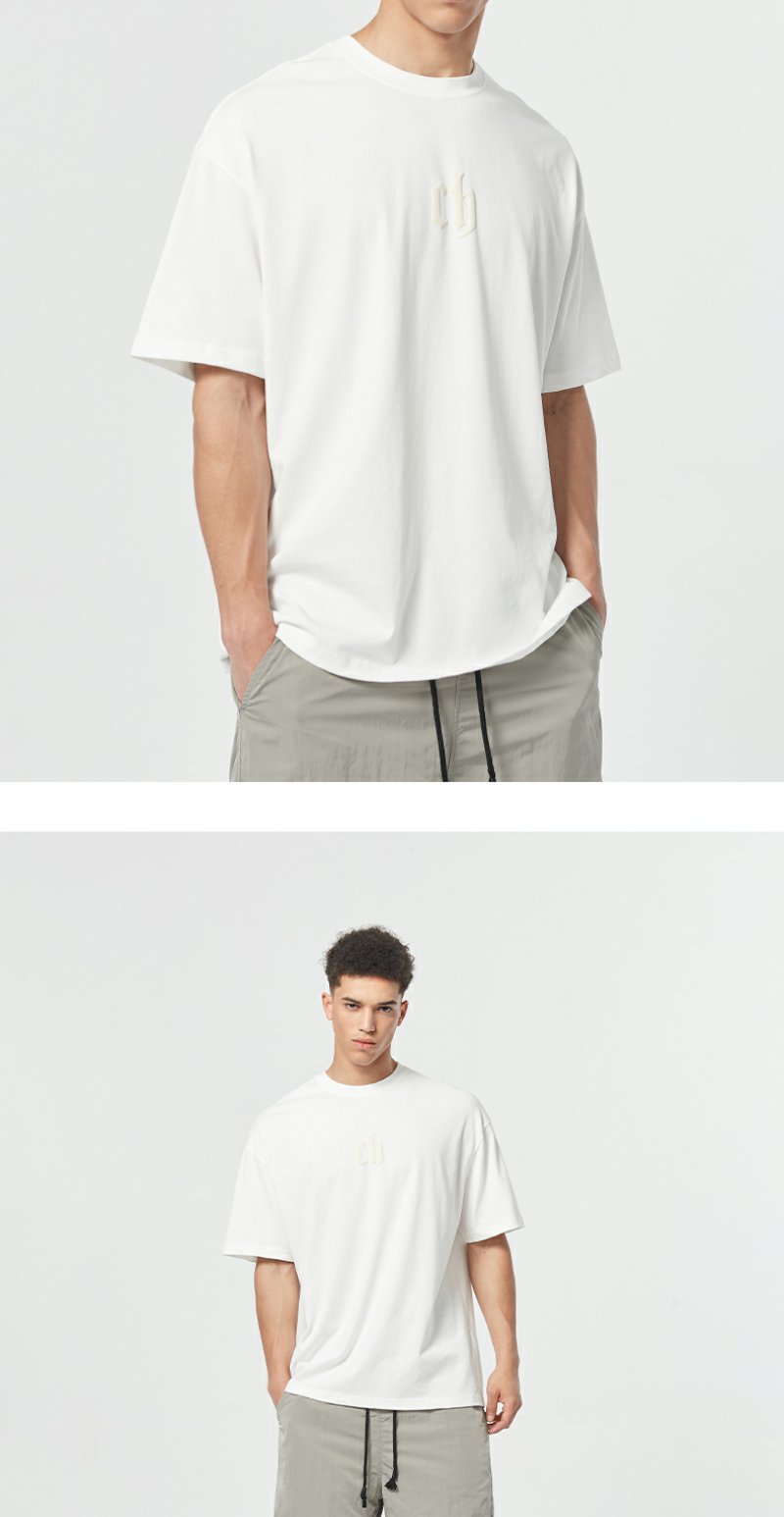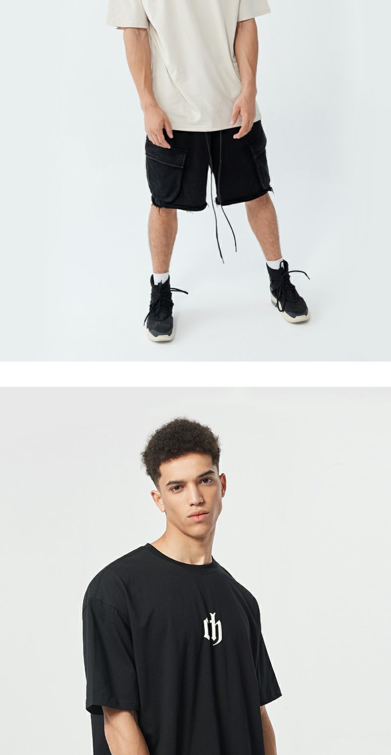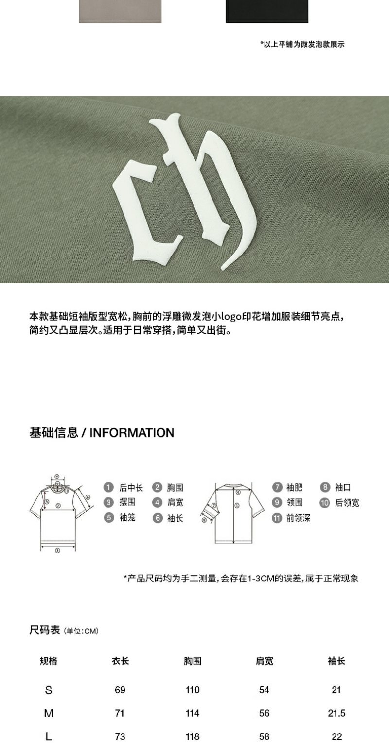 【胡可】CHINISM CH美式短袖t恤男水洗黑色宽松纯棉夏季半袖