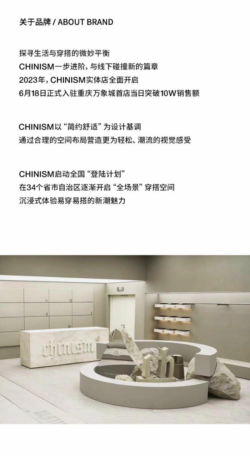 - 中国潮流快时尚男装品牌 CHINISM ,始创于2012年,正式成立于2014年。灵感源自每一位青年的穿衣需求。CHINISM - EASY WEAR