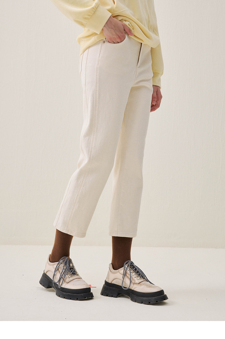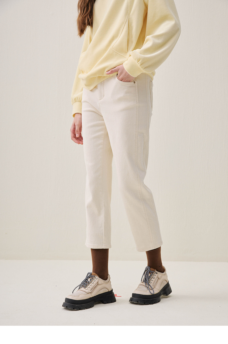 谜底白色牛仔裤烟管裤2025年冬季新品挺括修身九分裤女254MJ1604