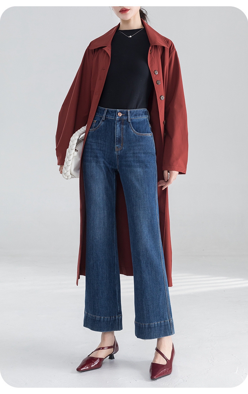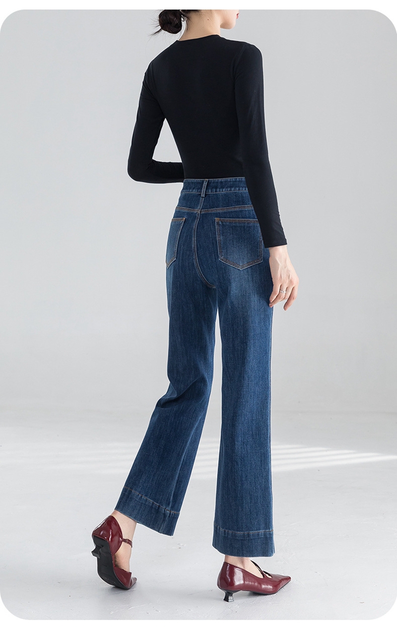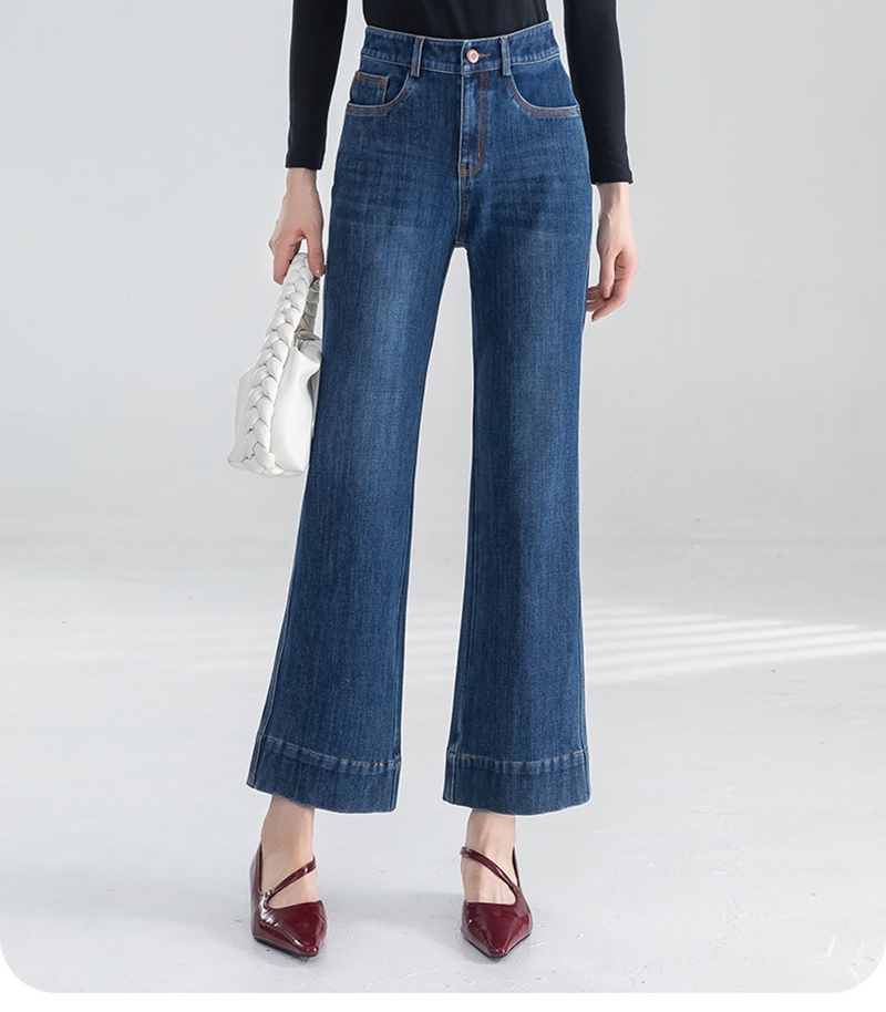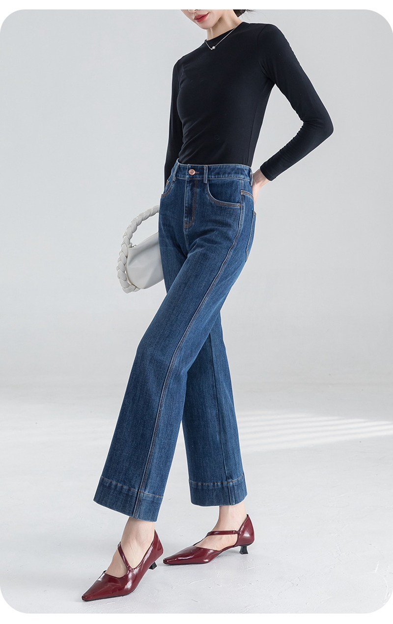 春夏时尚高腰拉链四面弹九分微喇牛仔裤