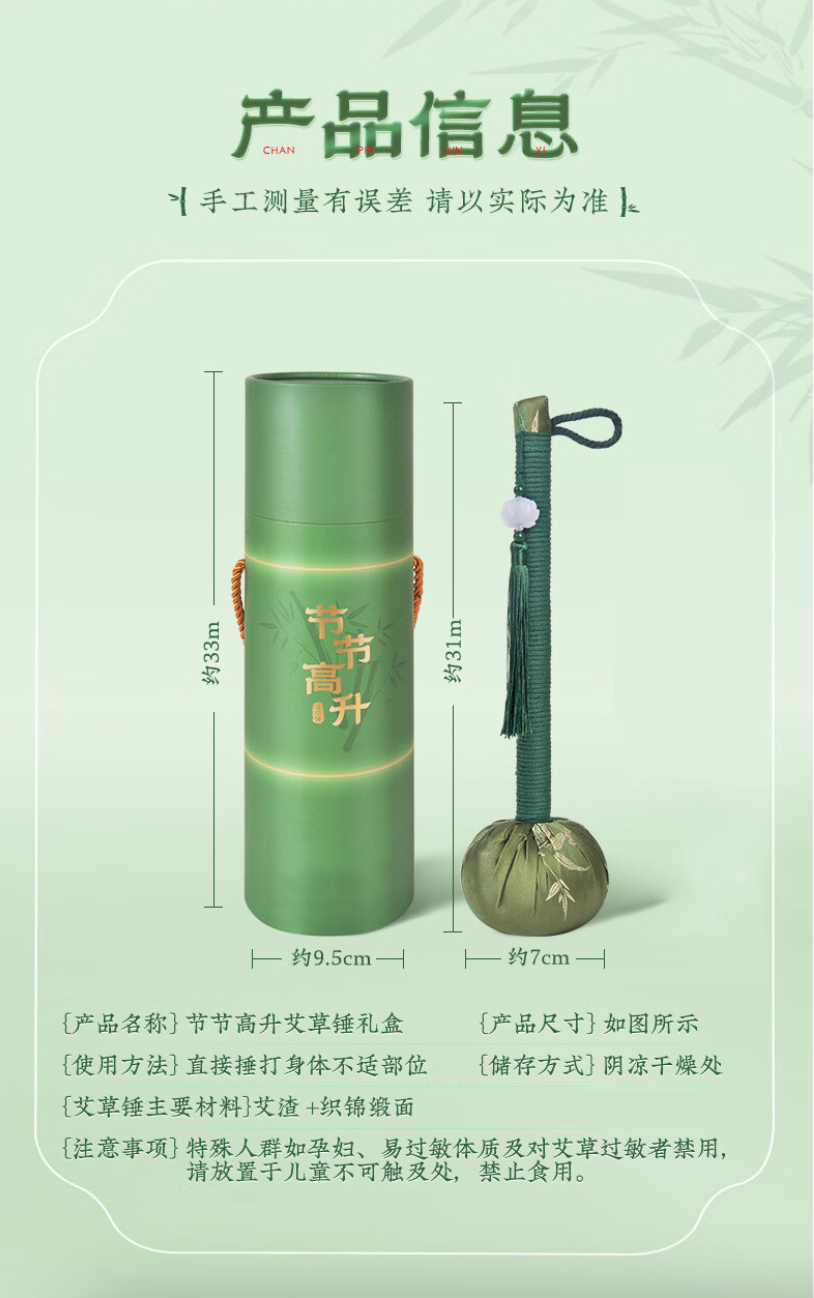 医川 节节高升艾草锤礼品物盒养生日按摩敲打棒捶