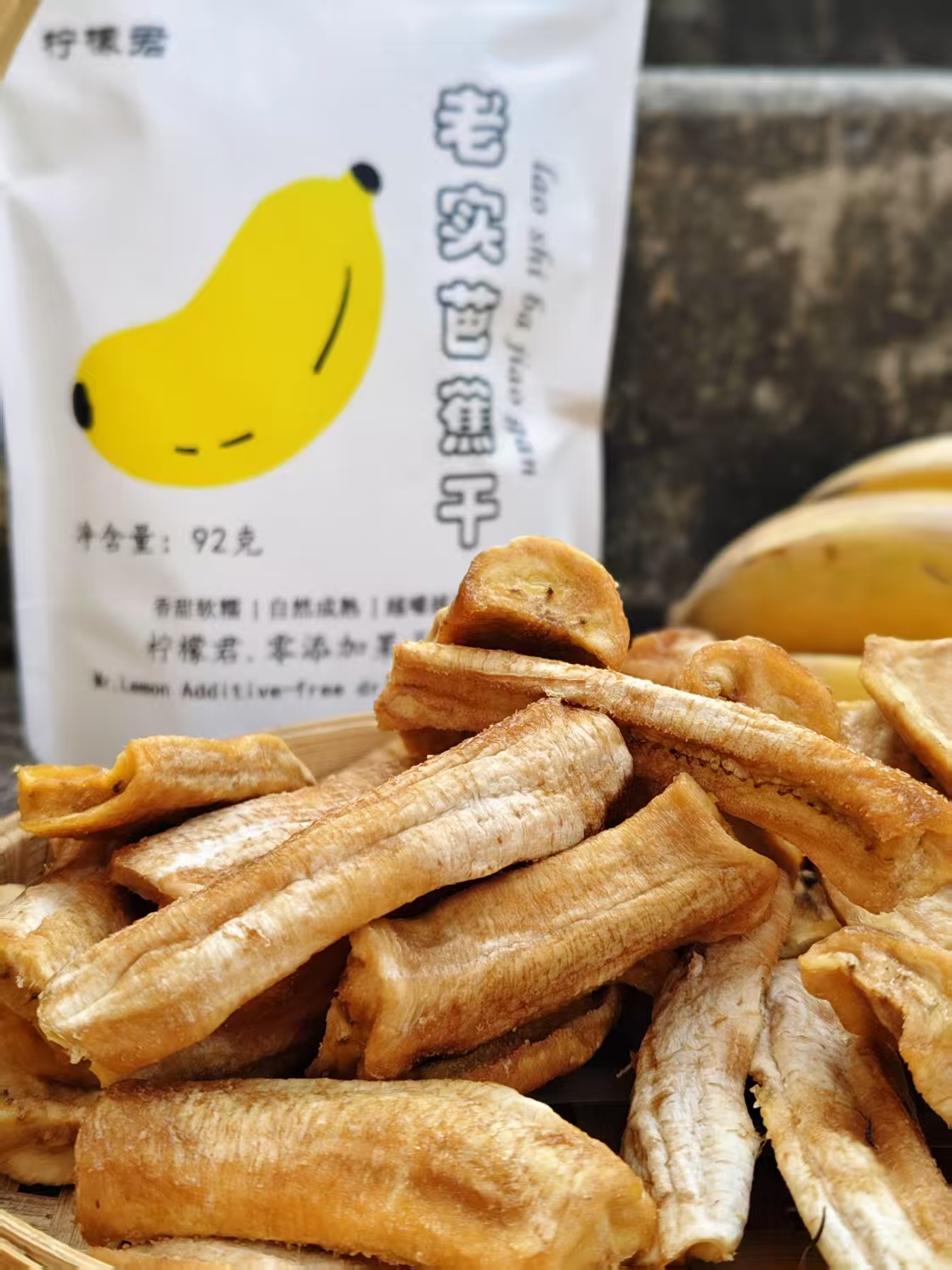老实芭蕉干的味道极其惊艳。老人孩子、对健康食物敏感的消费者们很喜欢,成为我们的三大果干之一。
