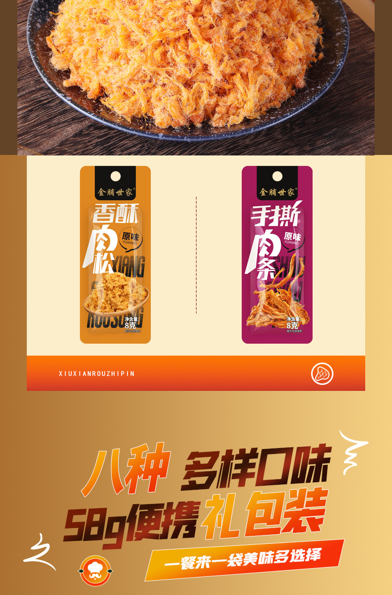 「8种口味!礼包装」多种肉制品礼包 肉松肉条手撕风干肉猪肉脯零食
