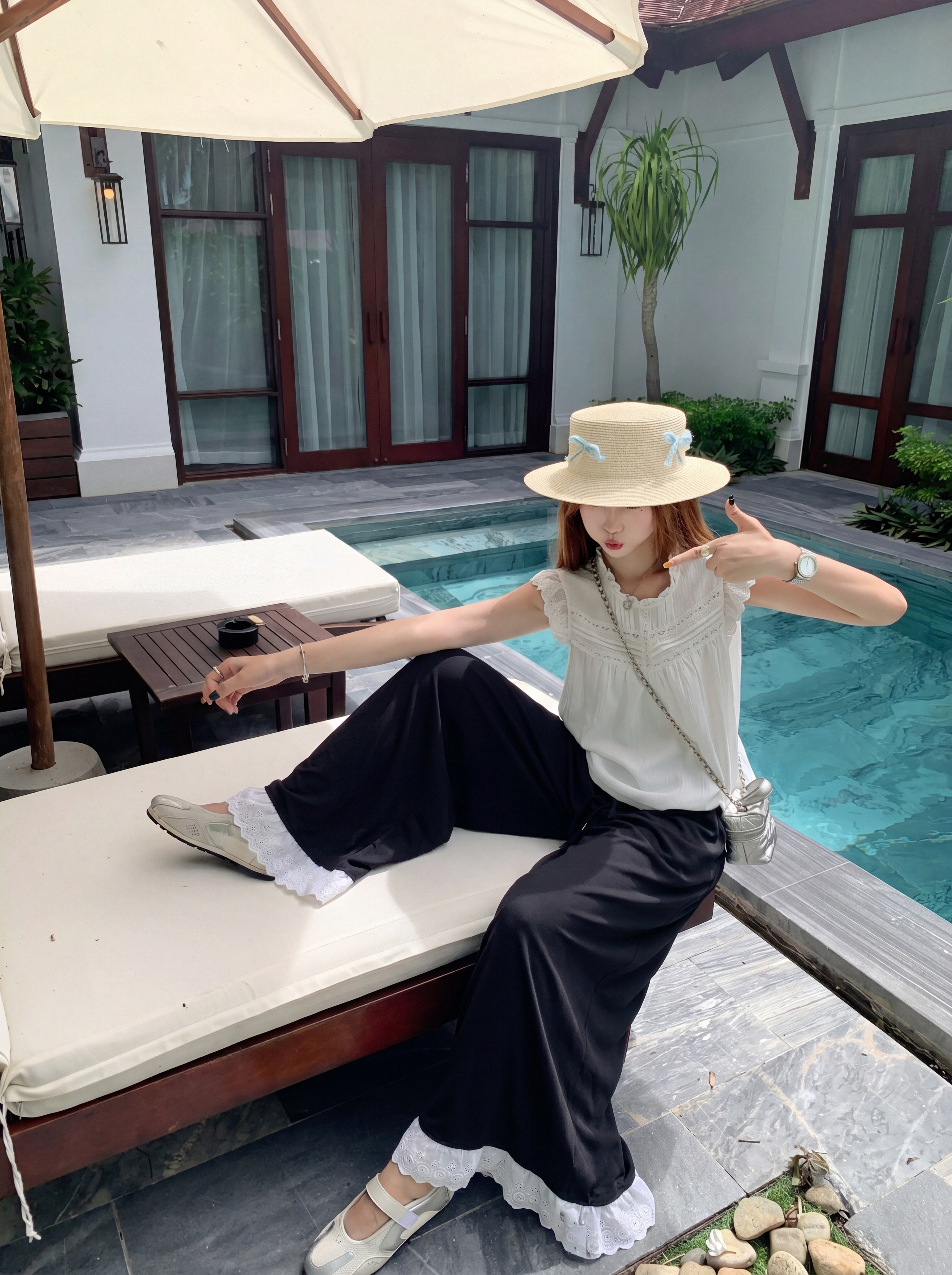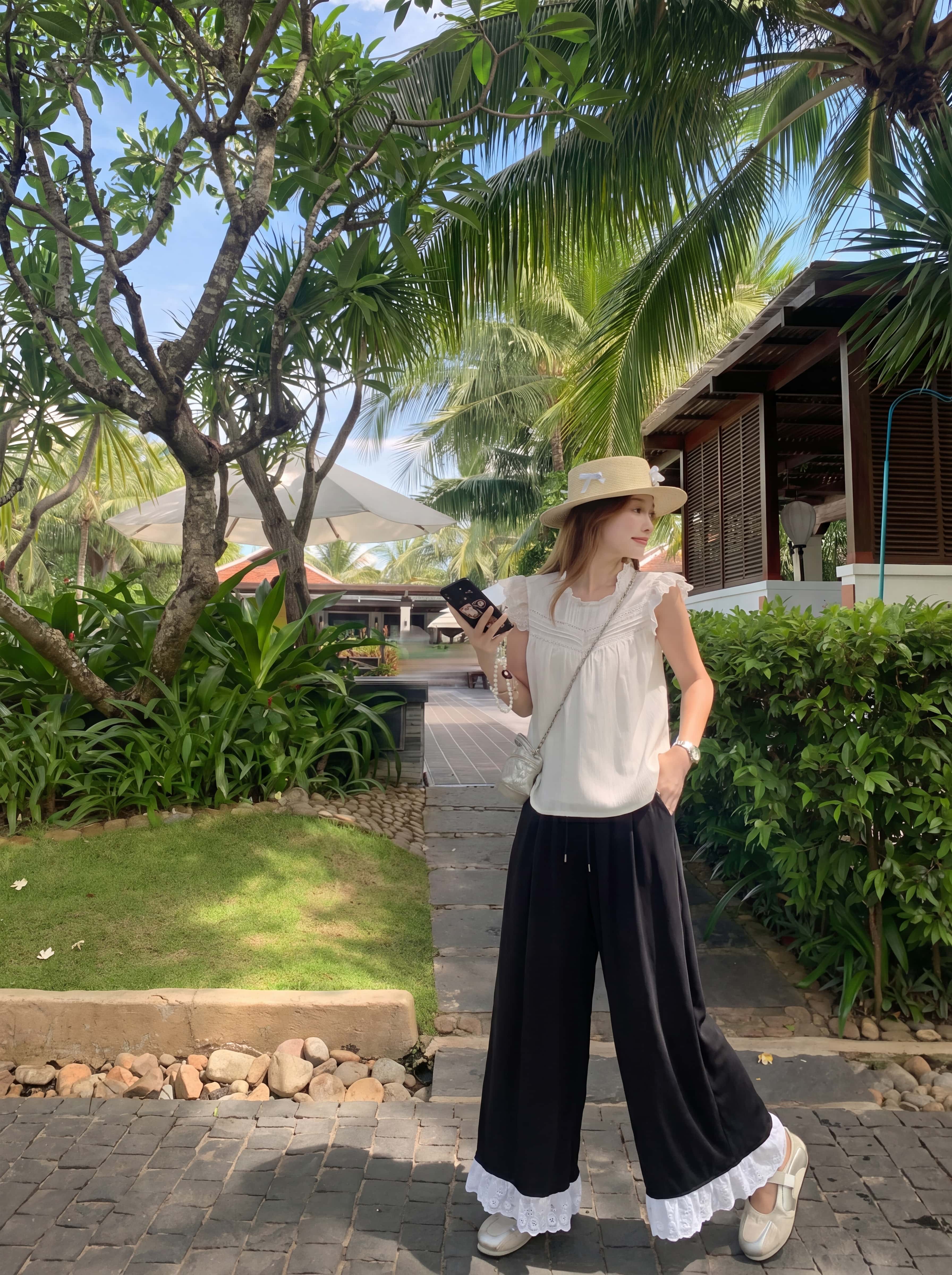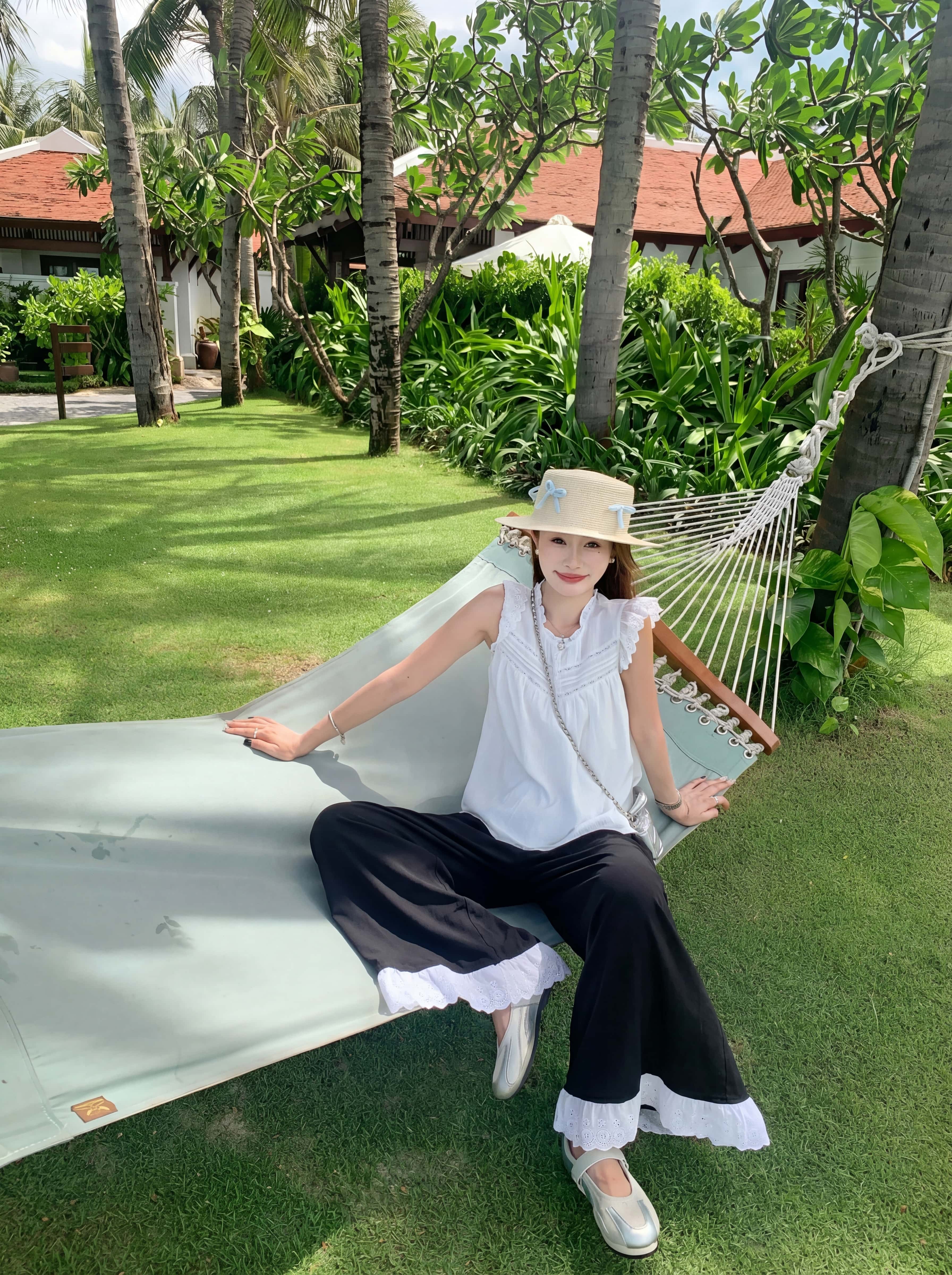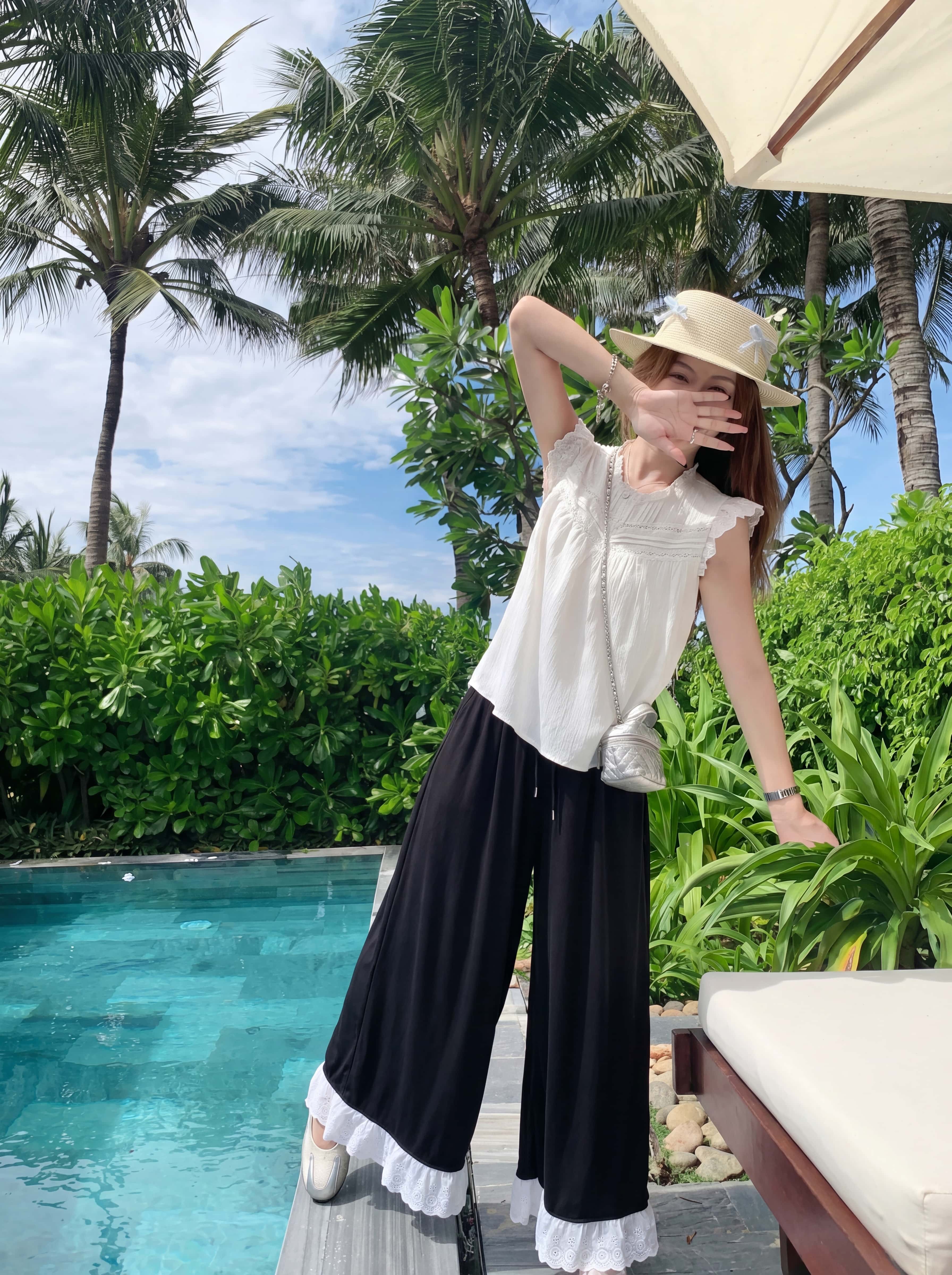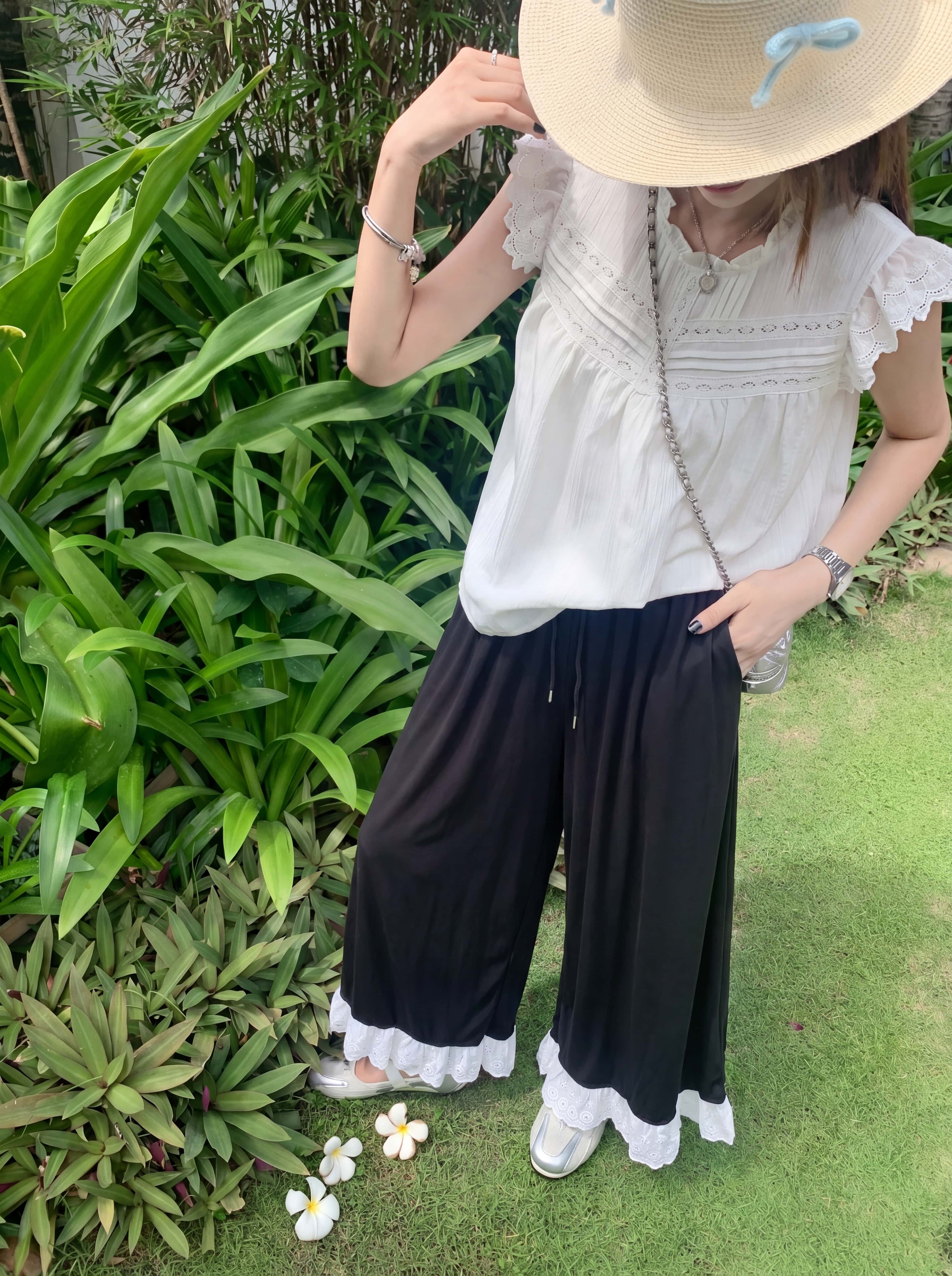 <曾小咸推荐> 蕾丝拼接阔腿休闲裤 日常139!! 活动89!!【预售款,预计3-15天发货】
