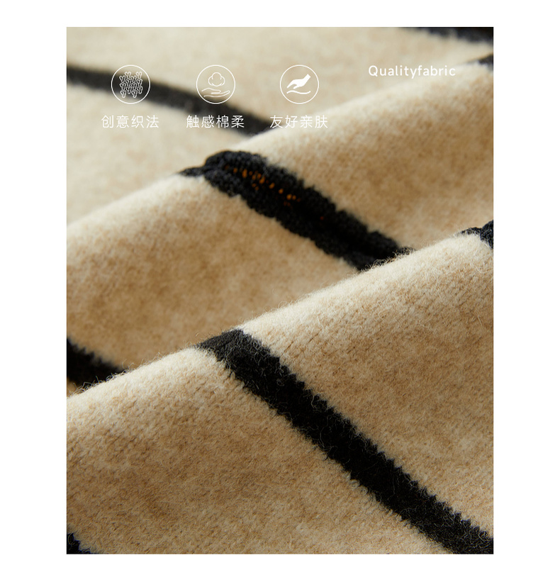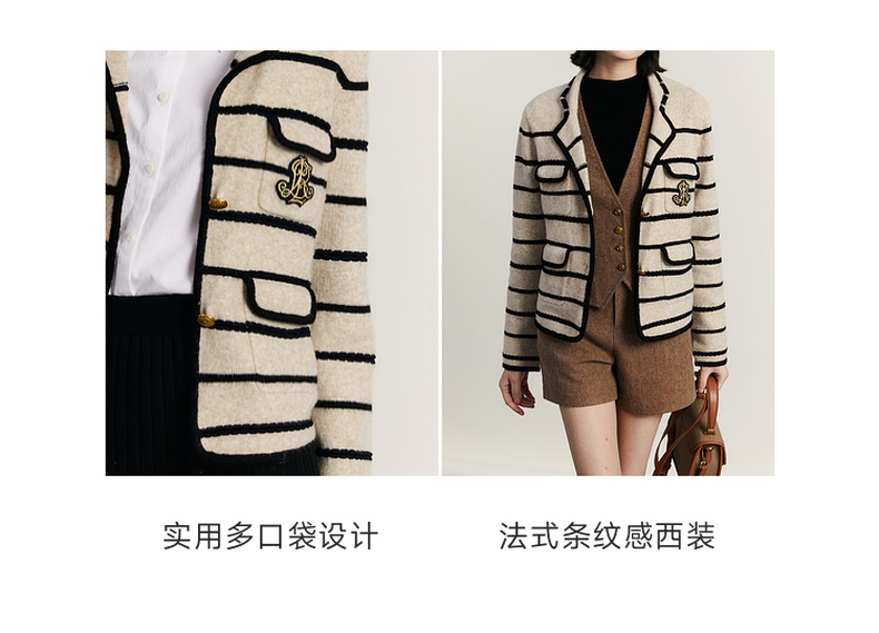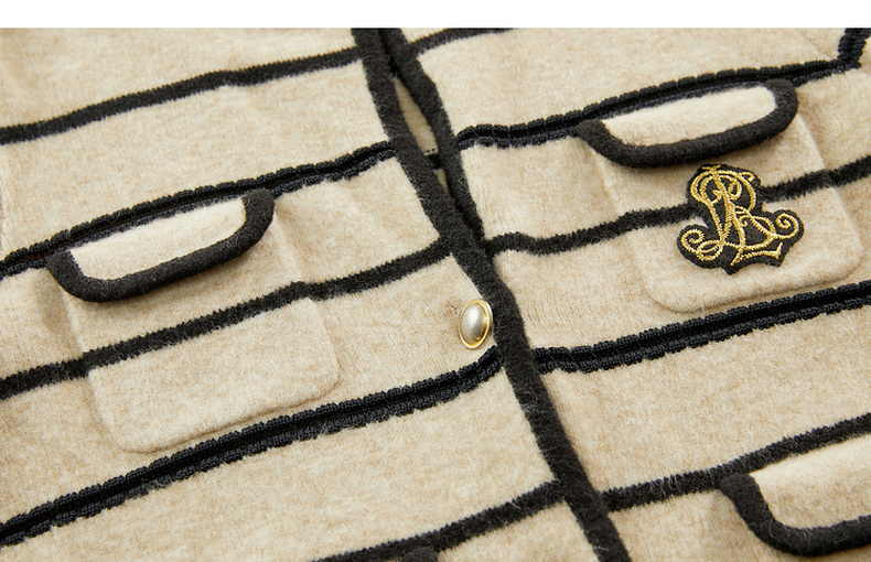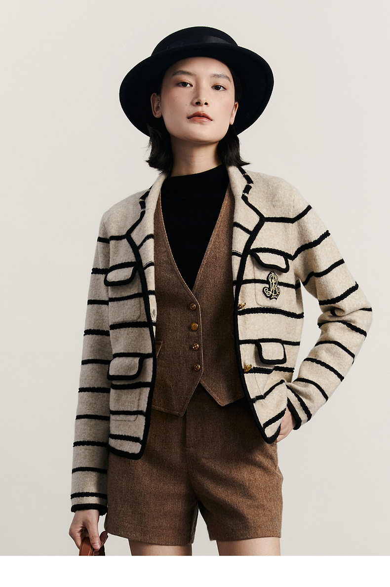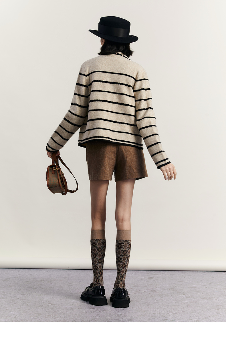 谜底针织开衫女2023冬新款复古文艺学院风条纹针织外套234MZ1881