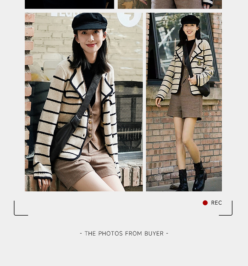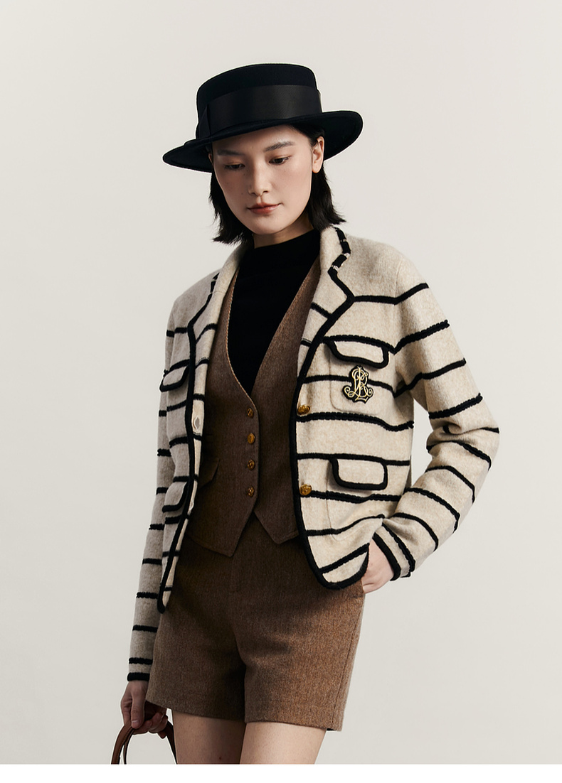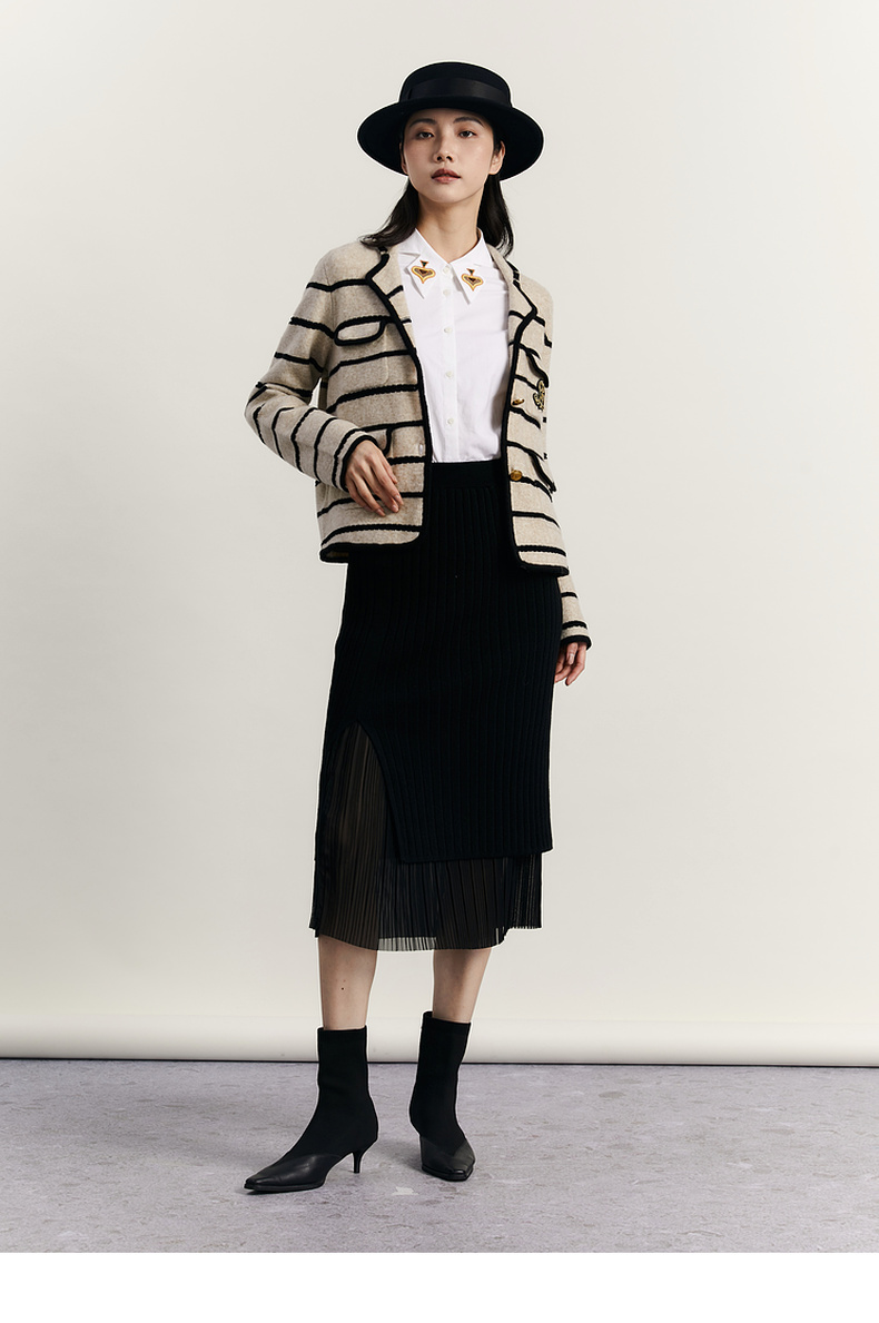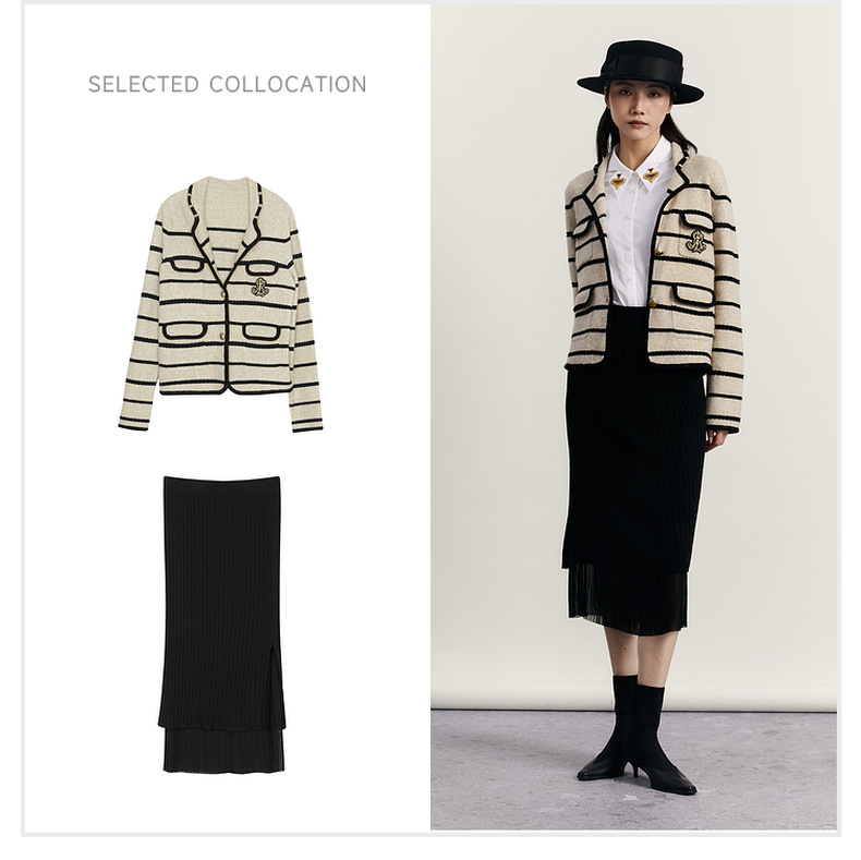 谜底针织开衫女2023冬新款复古文艺学院风条纹针织外套234MZ1881