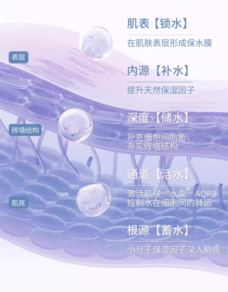 △ 针对5重生物靶点,从内到外、层层深入保湿
