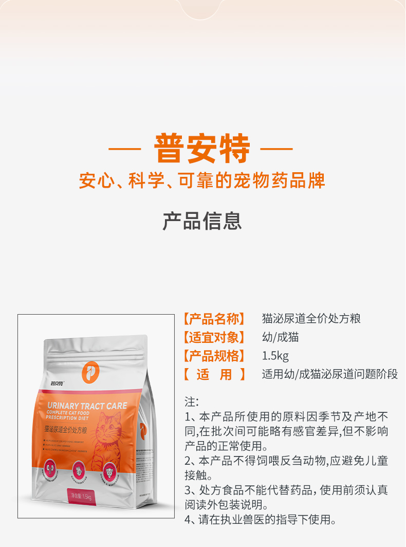 普安特泌尿处方粮猫咪泌尿道系统处方猫粮家成猫幼猫全价配方粮