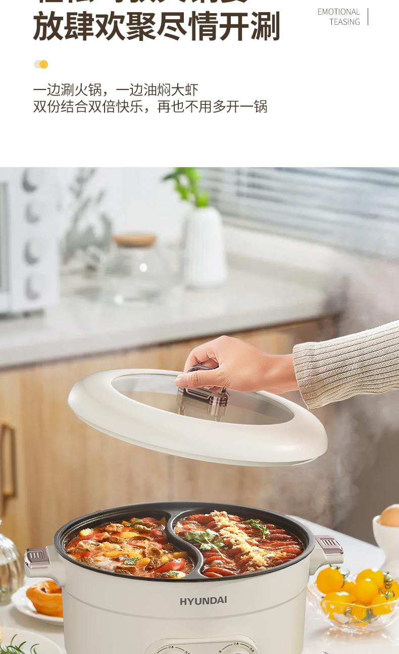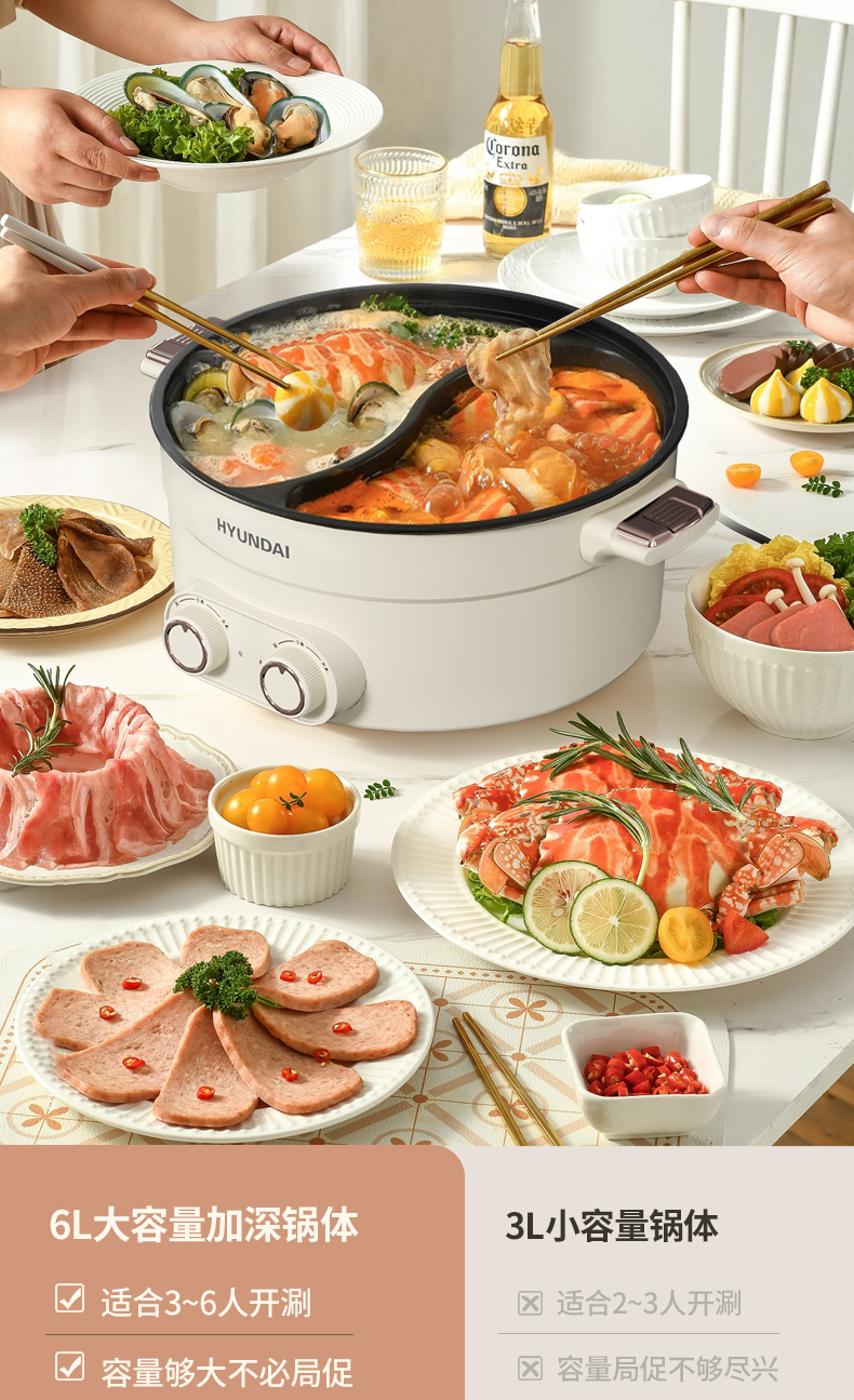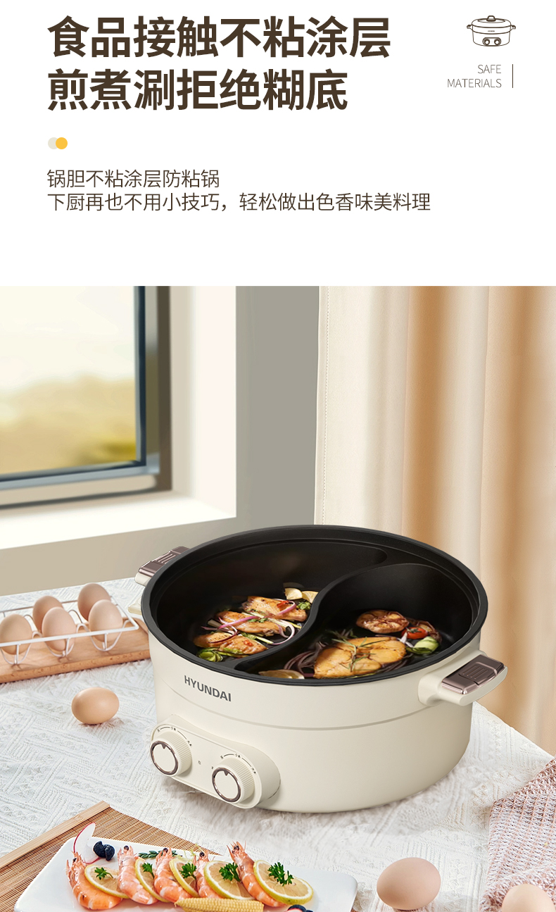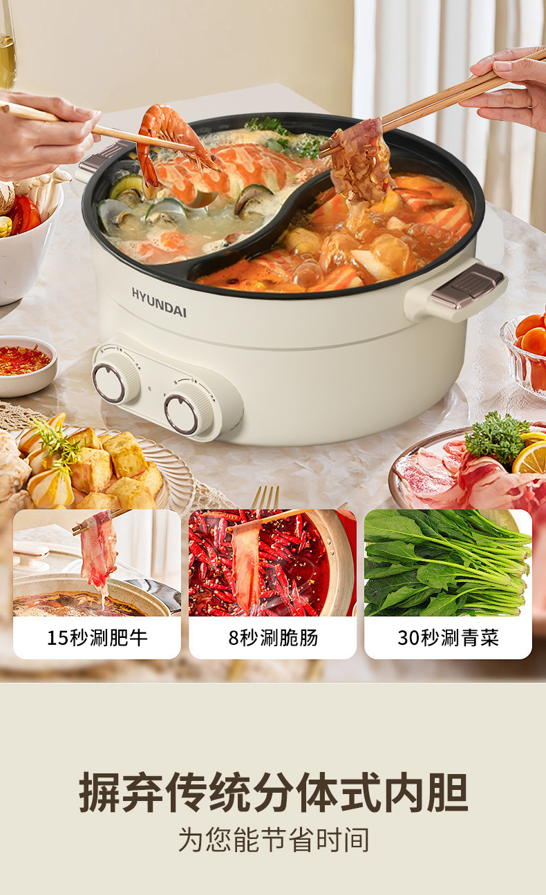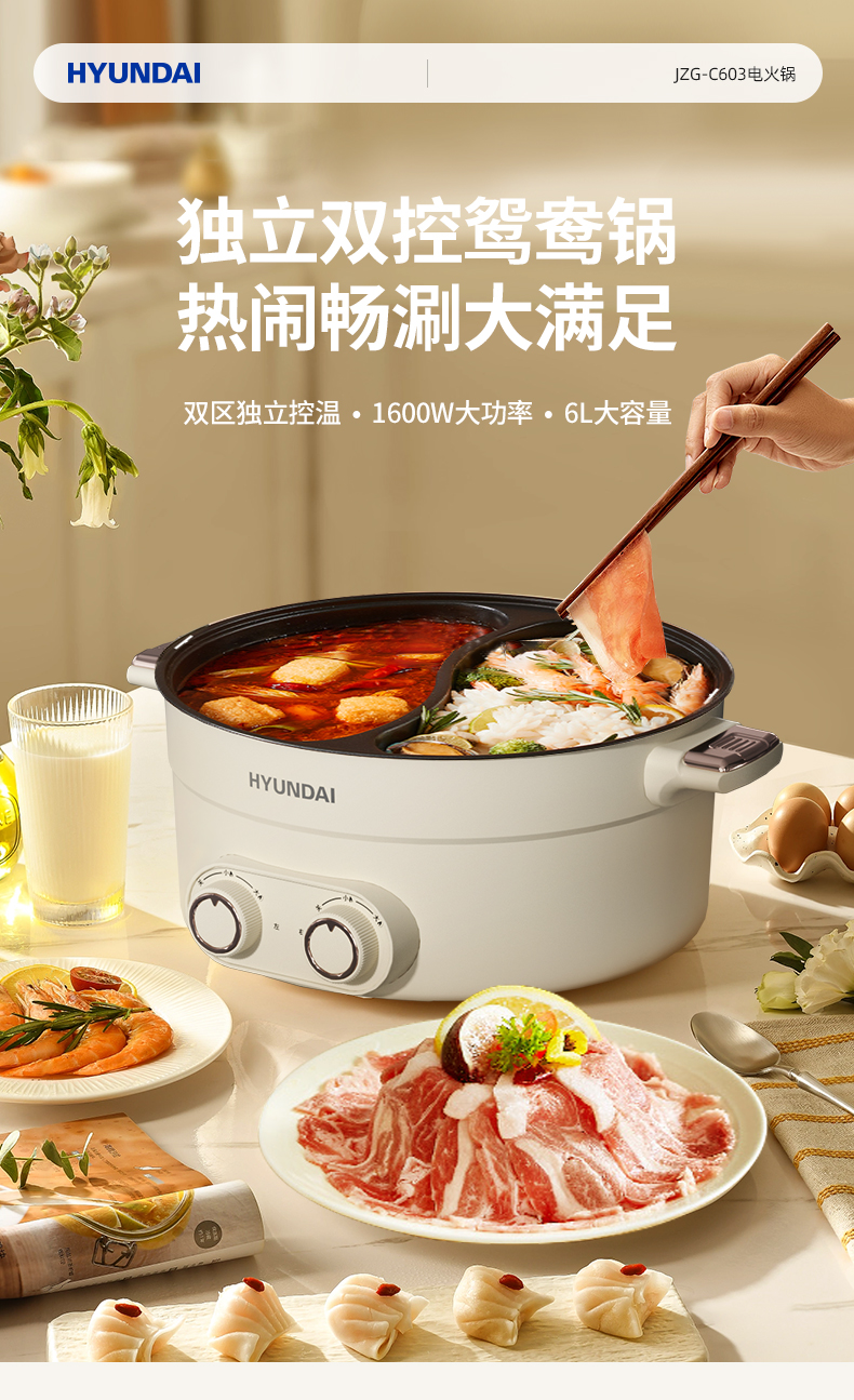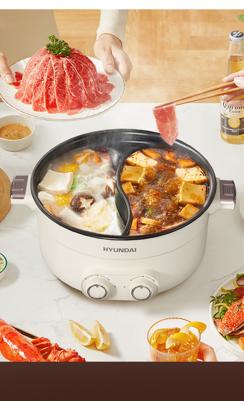 HYUNDAI鸳鸯电火锅 JZG-C603 厚实锅身 不粘材质