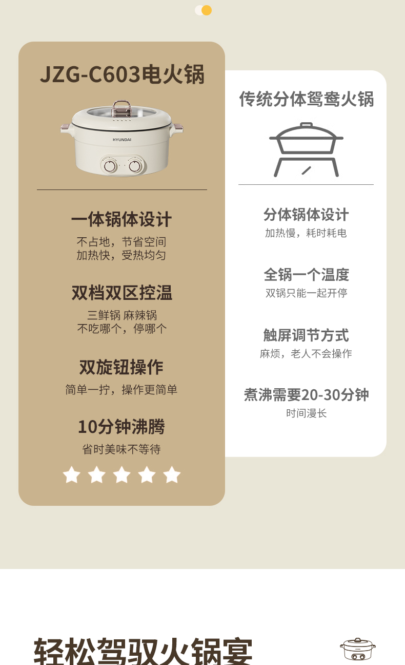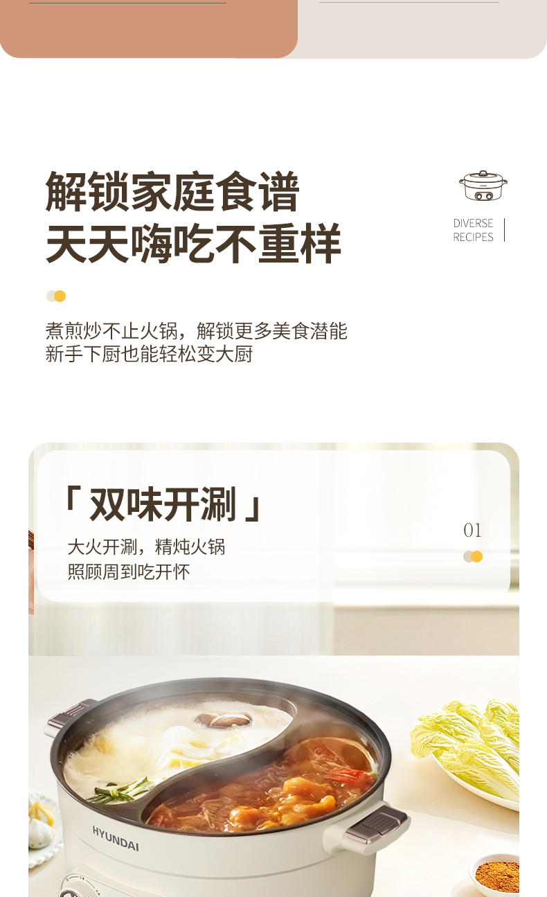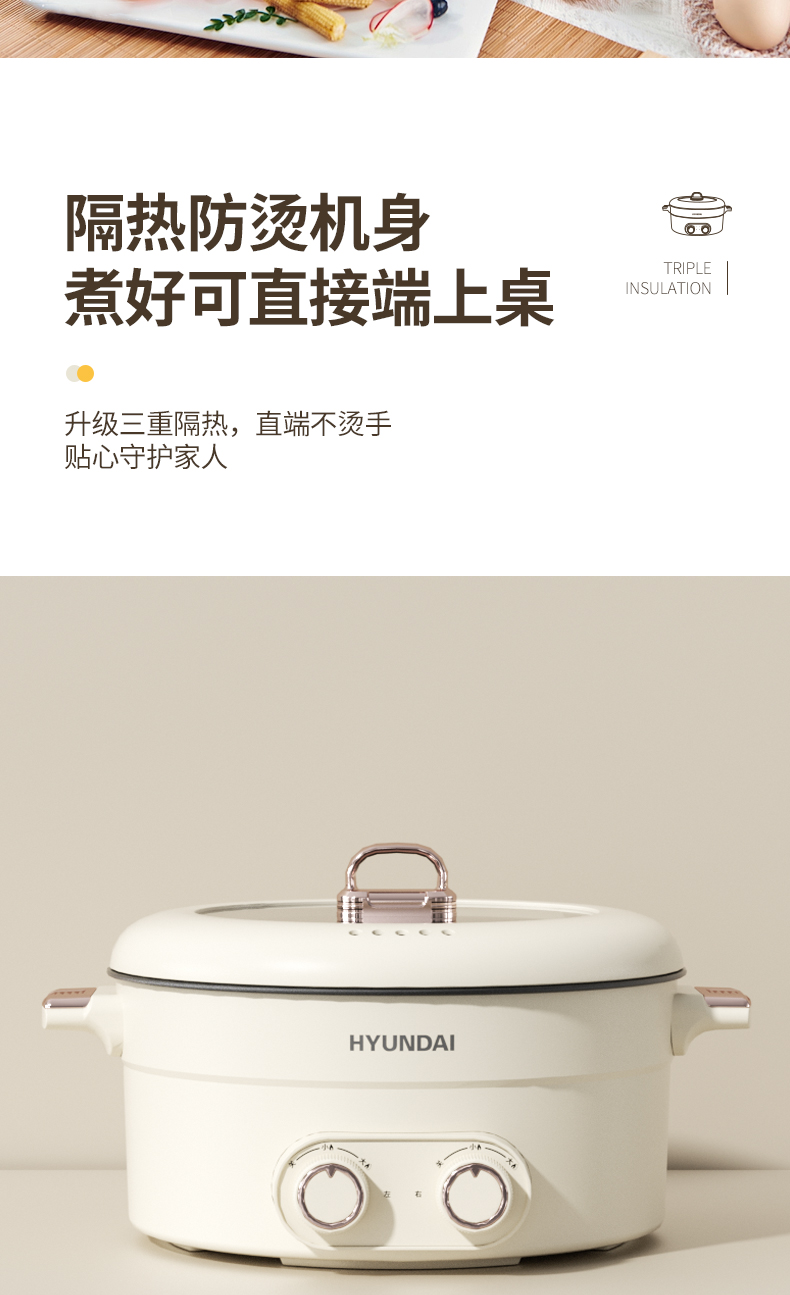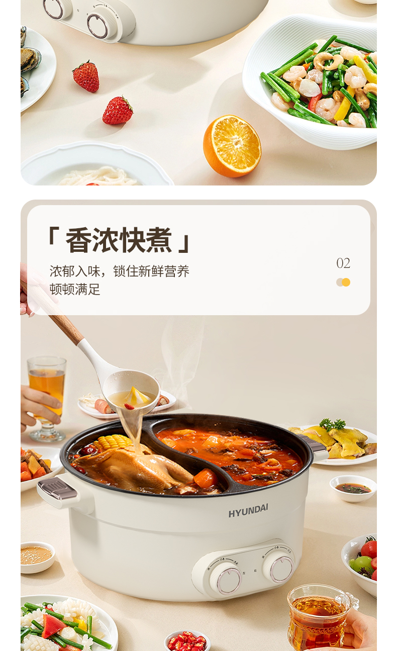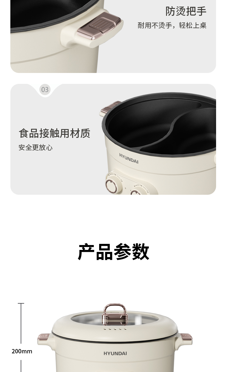 HYUNDAI鸳鸯电火锅 JZG-C603 厚实锅身 不粘材质