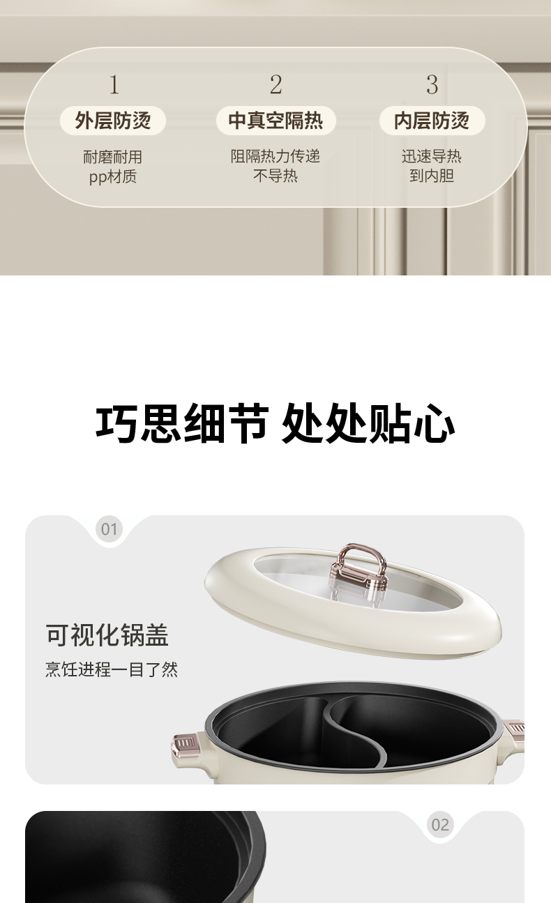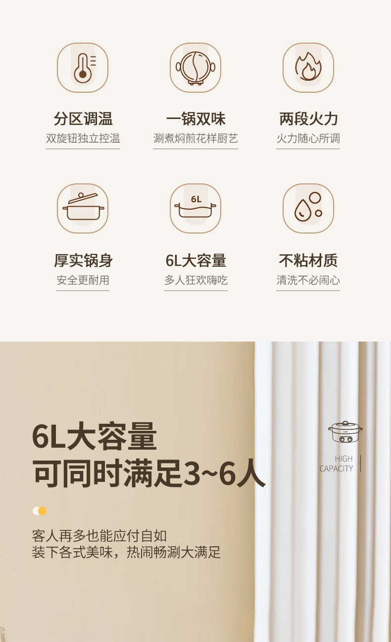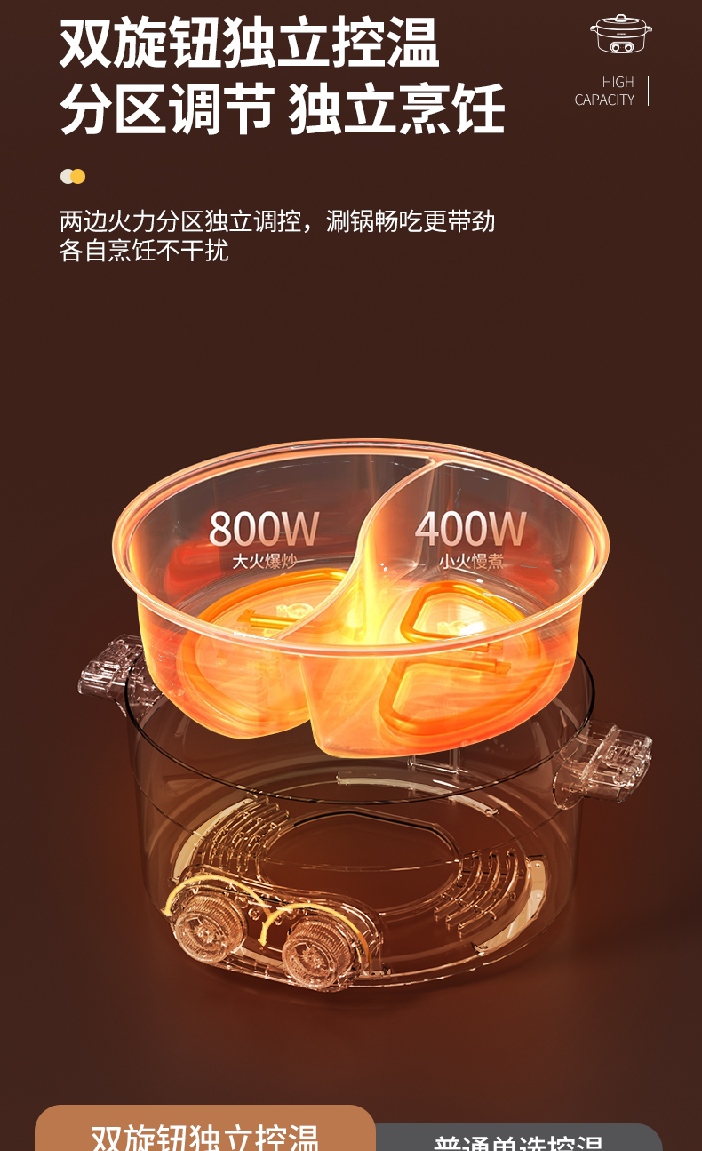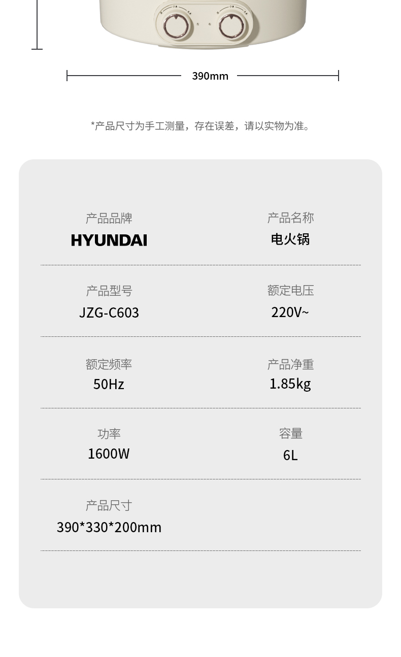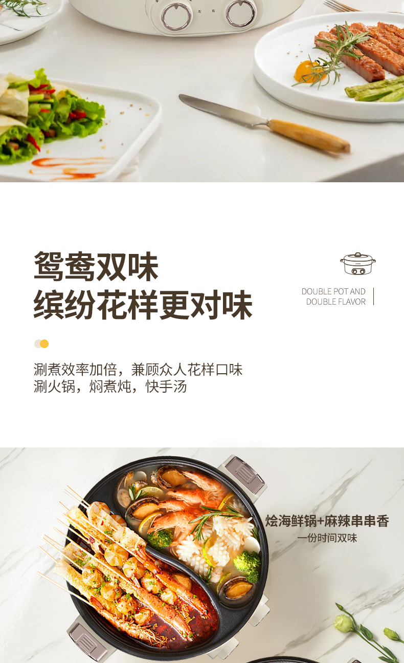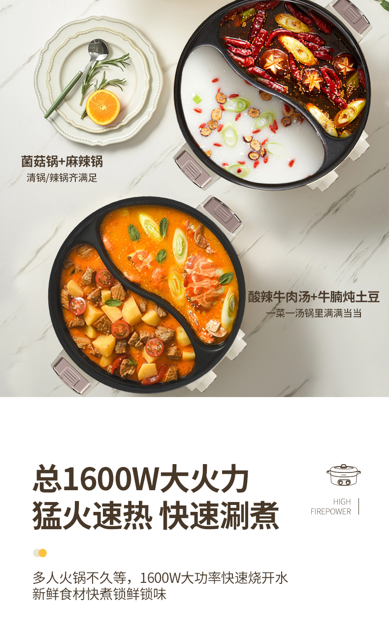HYUNDAI鸳鸯电火锅 JZG-C603 厚实锅身 不粘材质