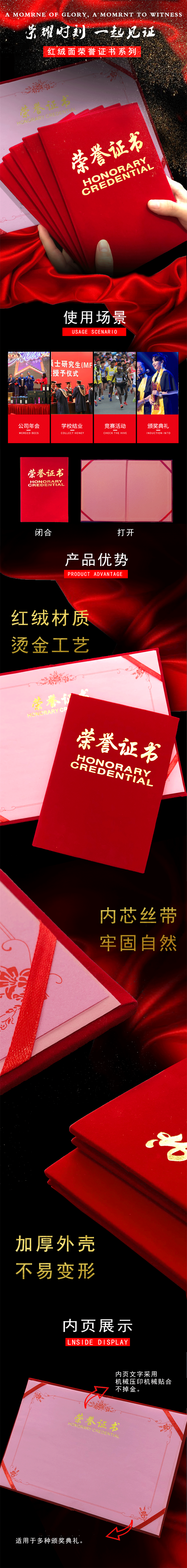 启恒荣誉证书 绒面加厚12烫金奖状 1本 打开平摊a4证书优秀员工年会活动奖励表彰