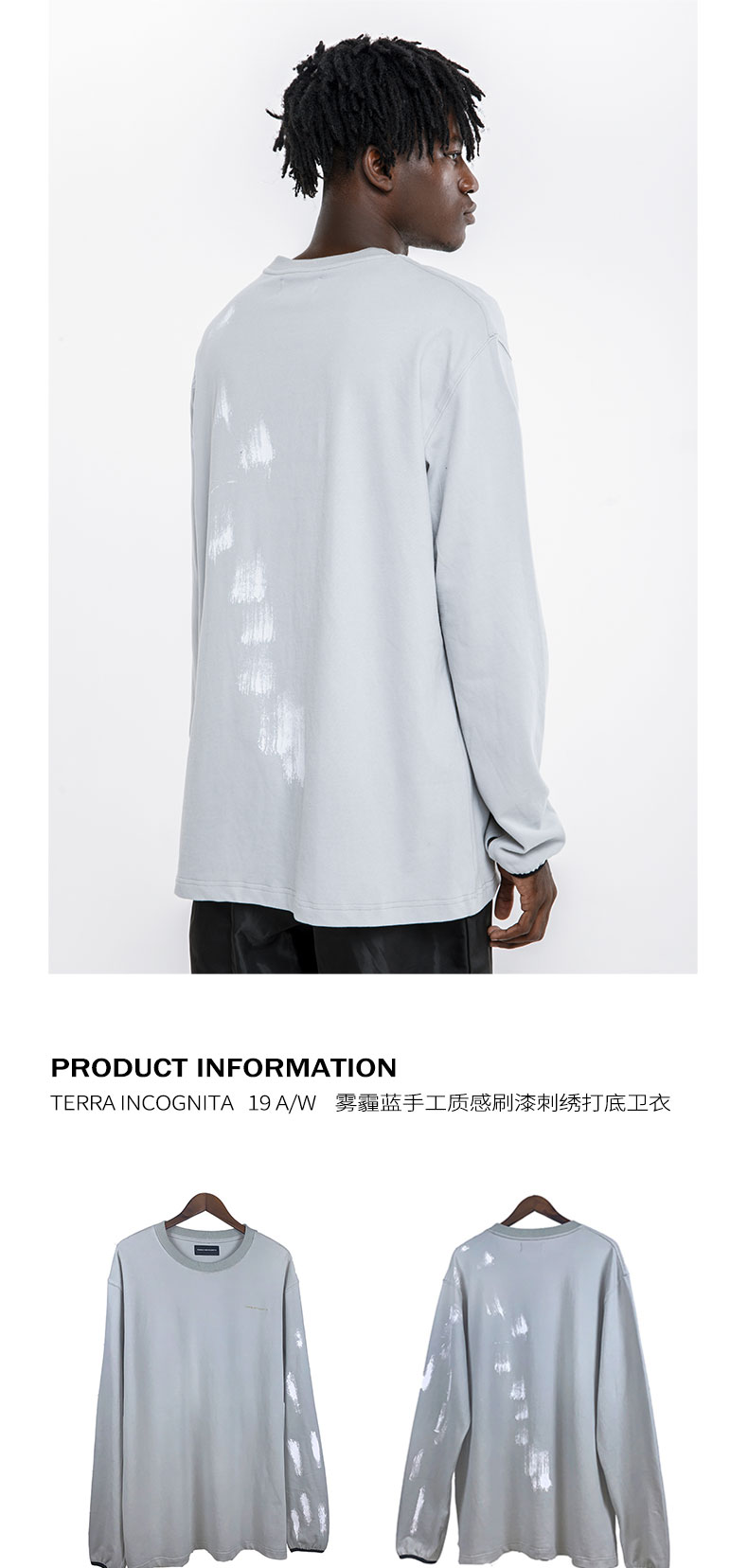 TERRA INCOGNITA 19AW2019新款手工刷漆质感刺绣套头卫衣秋冬男女