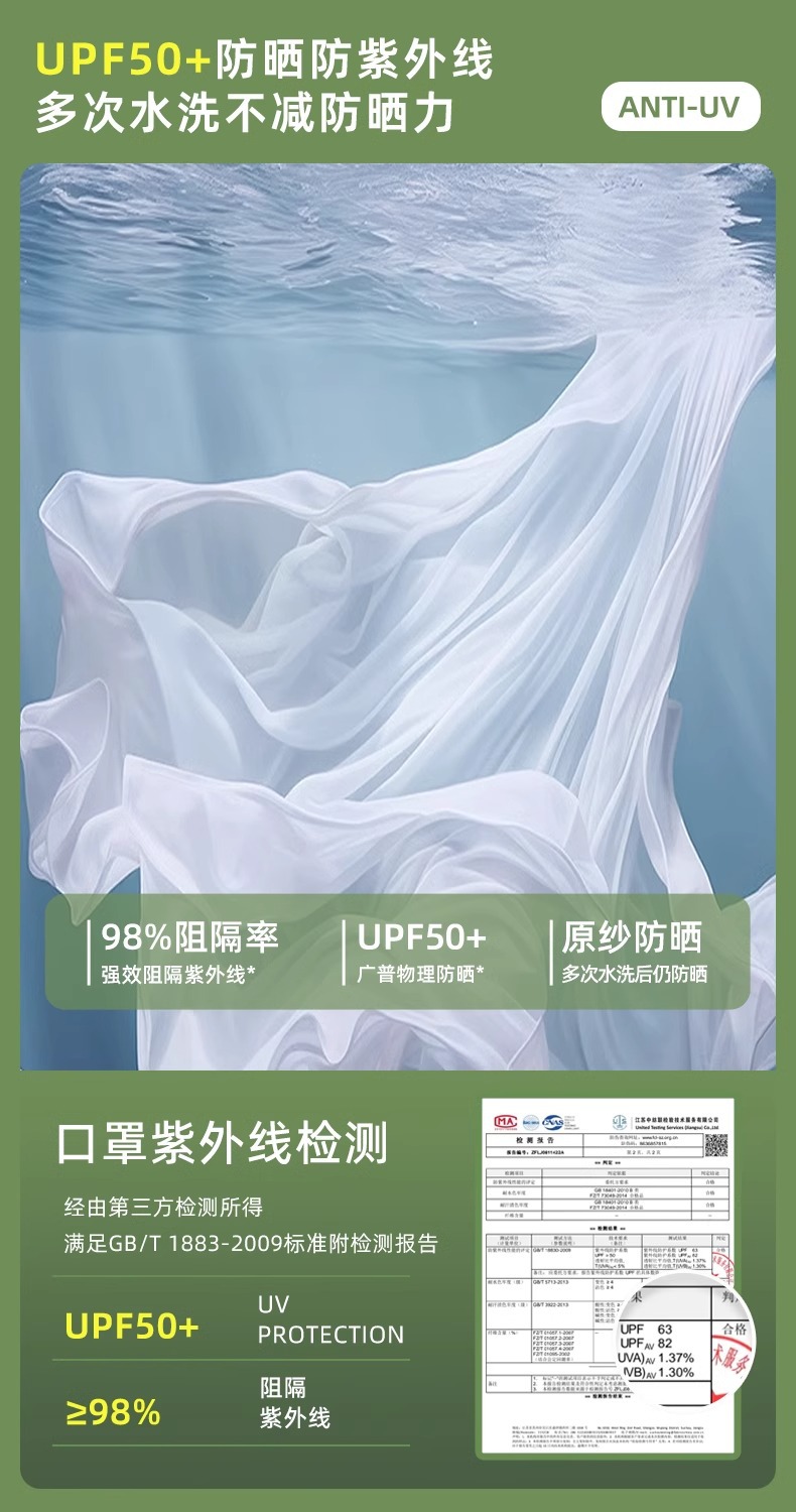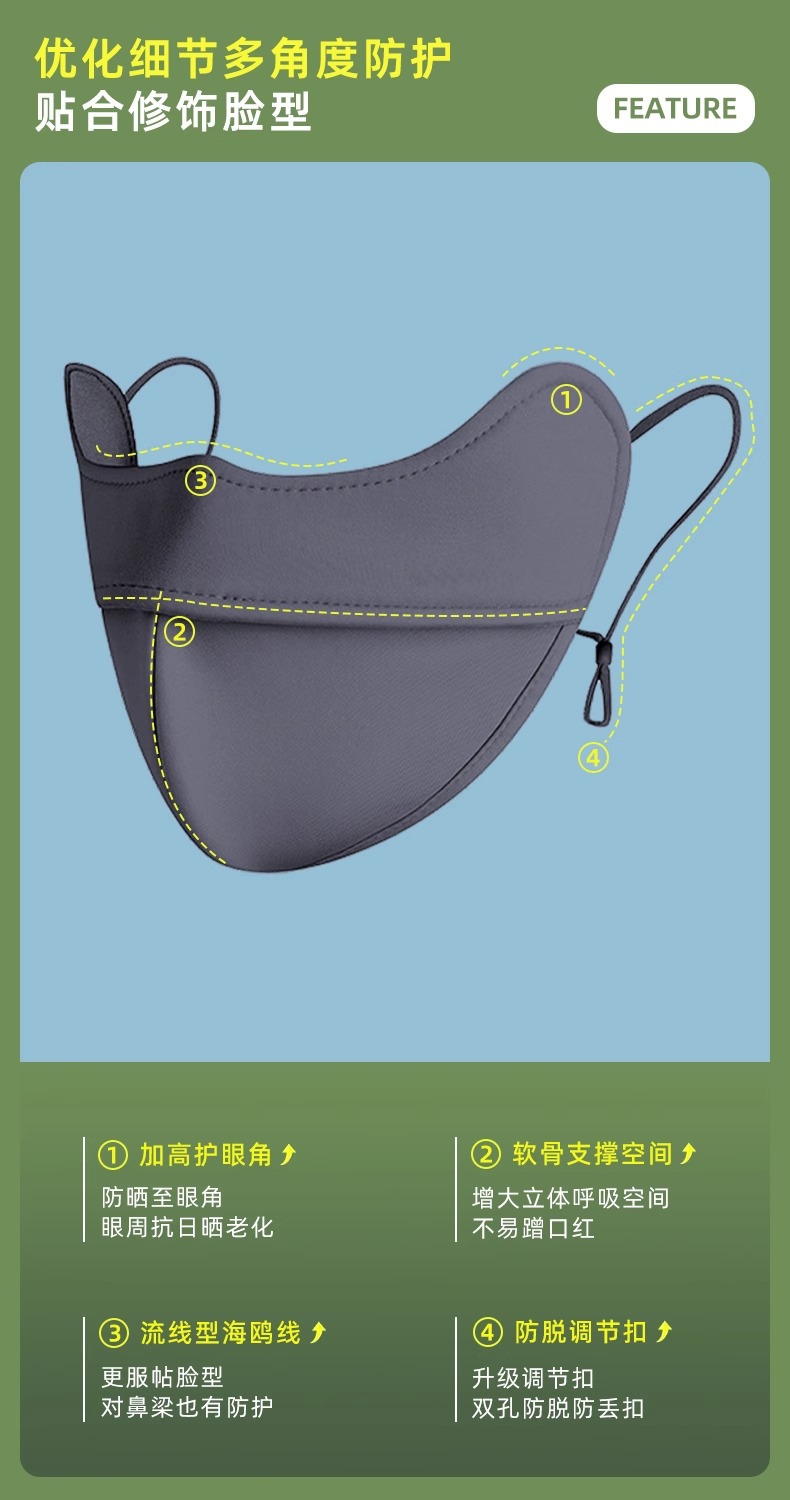 【小米专属】夏季薄款透气冰丝防晒口罩 UPF50+(2只)