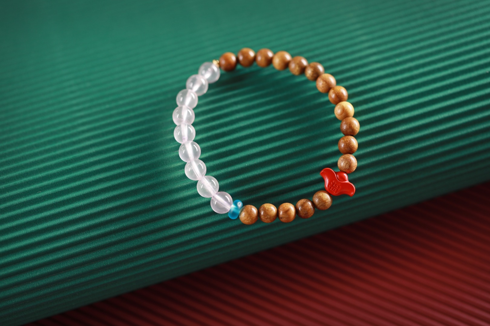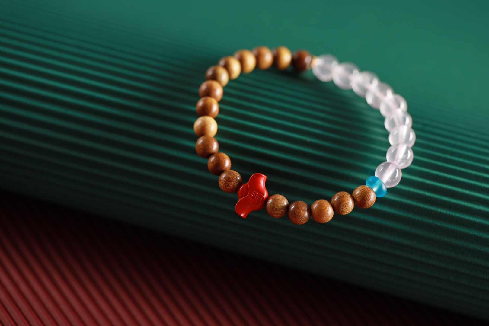 单圈金丝楠木,搭配能量粉水晶+朱砂福字元宝