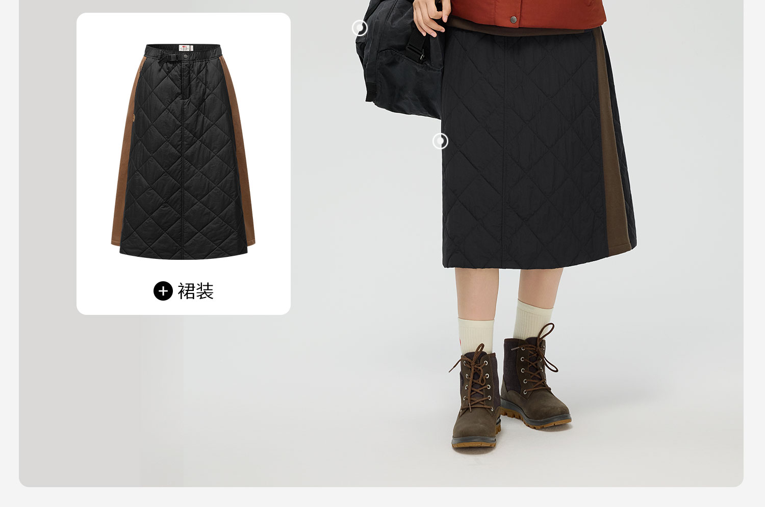 北极狐女士户外柔软舒适百搭保暖格子半身A字裙 05232210