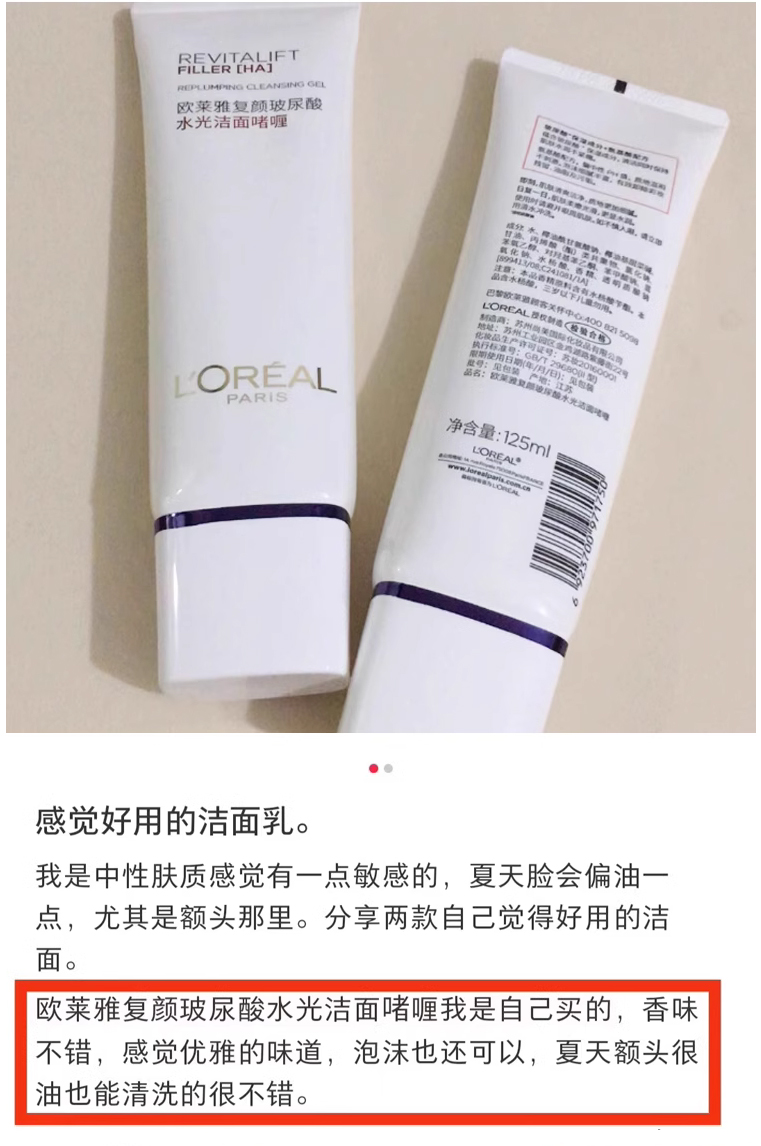 【商品名称】欧莱雅复颜玻尿酸水光洁面啫喱125ML