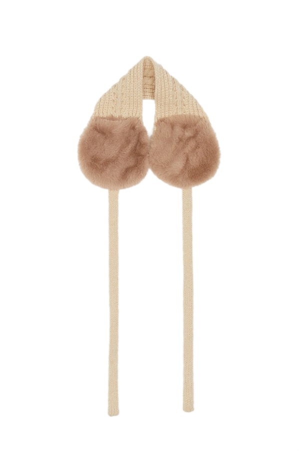 AVA 杏色拼接系带护耳罩 5850