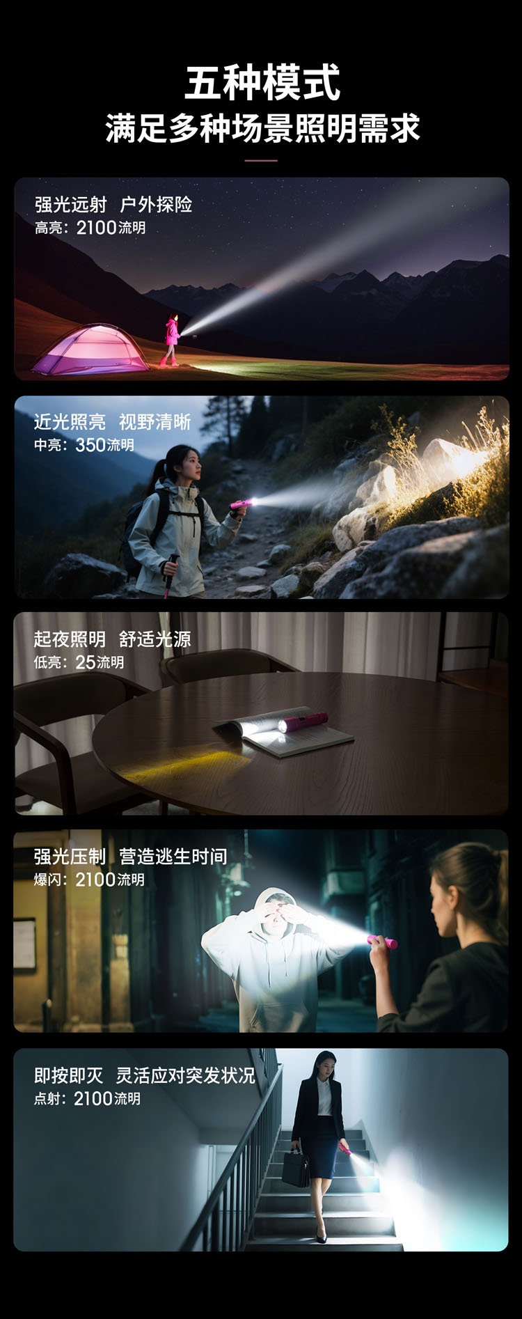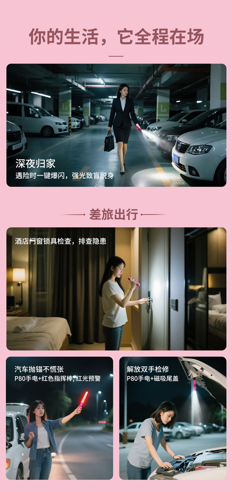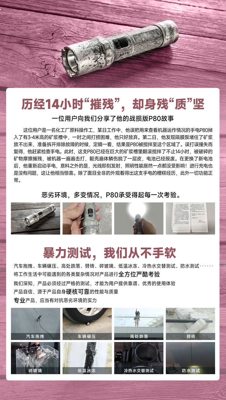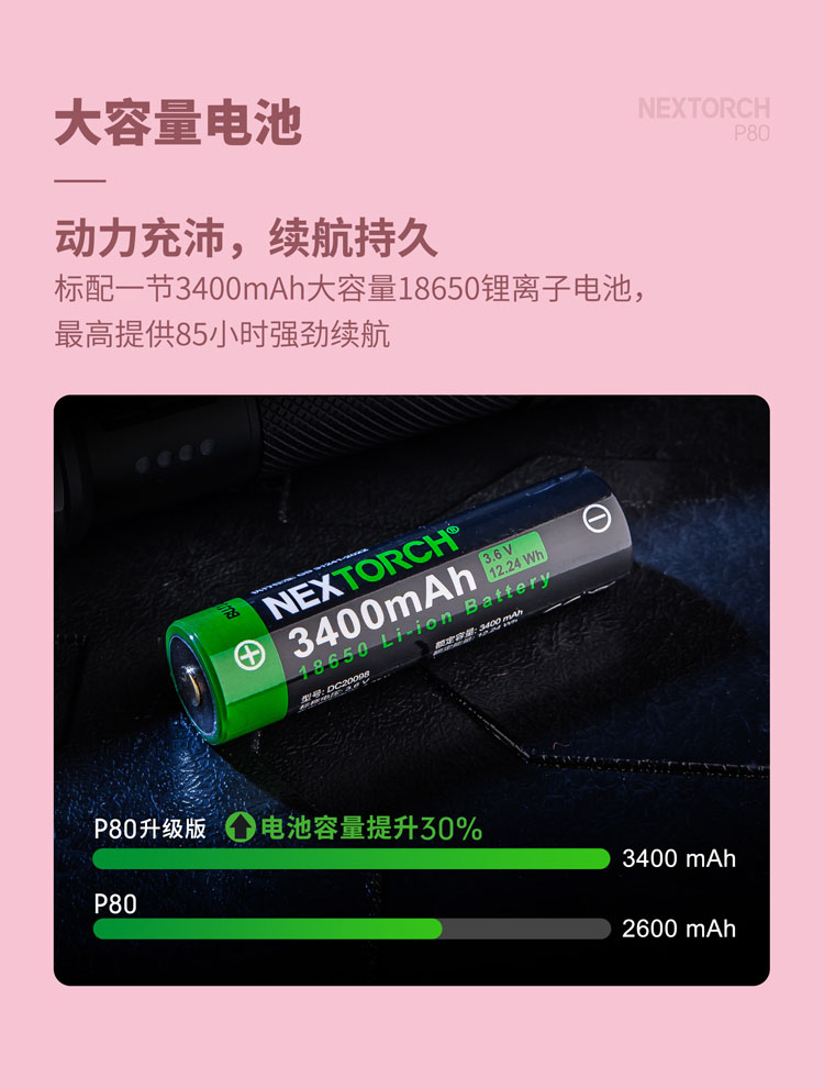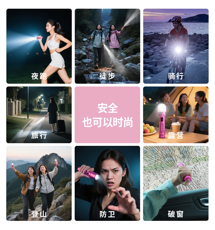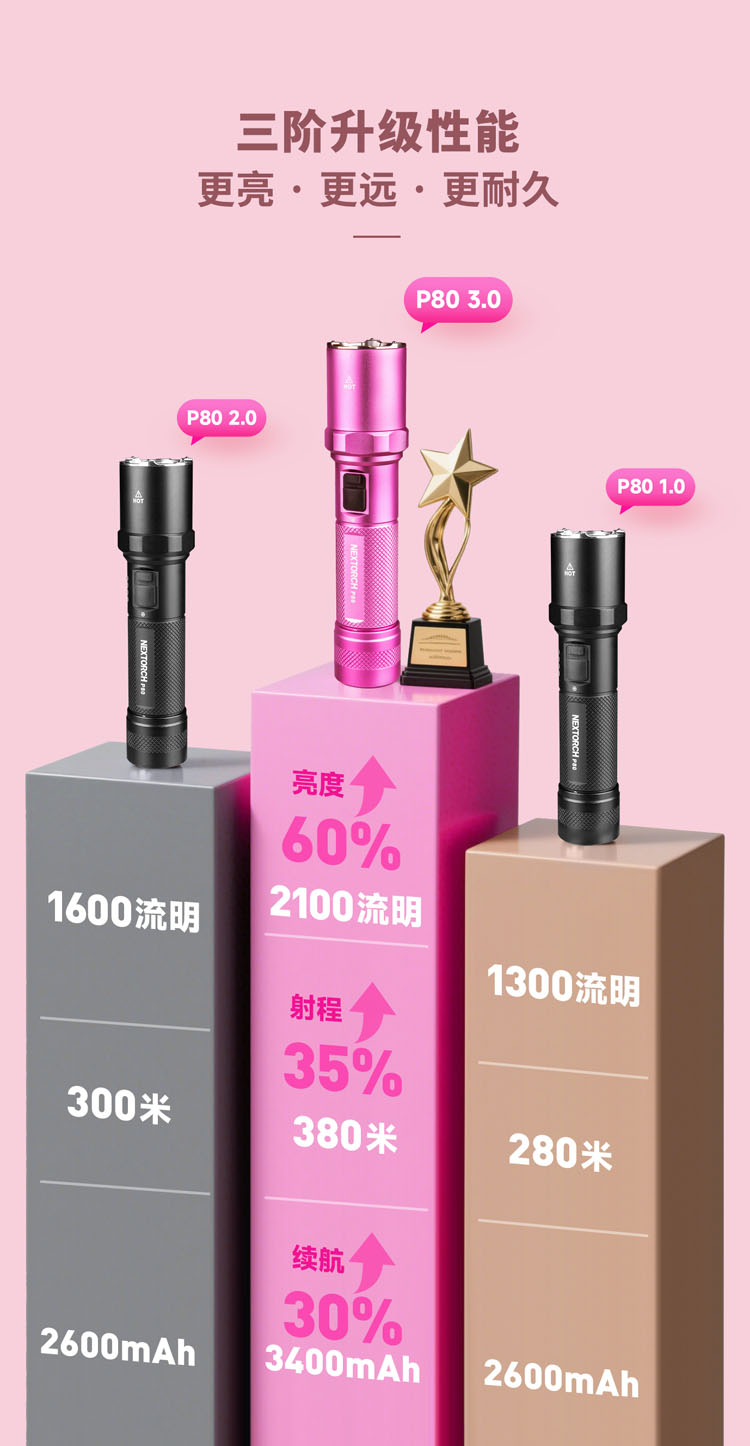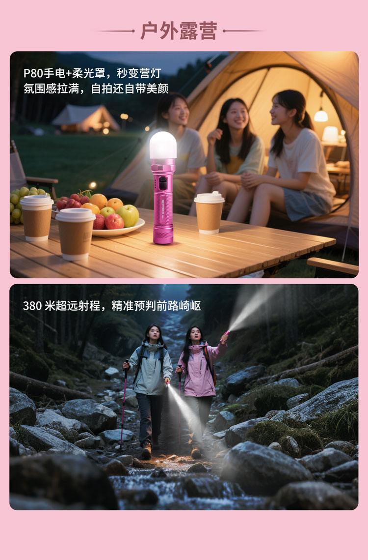 纳丽德【新品】P80粉色银色,防身强光手电2100流明,粉色P80赠粉色手绳,银色P80依然是黑色手绳