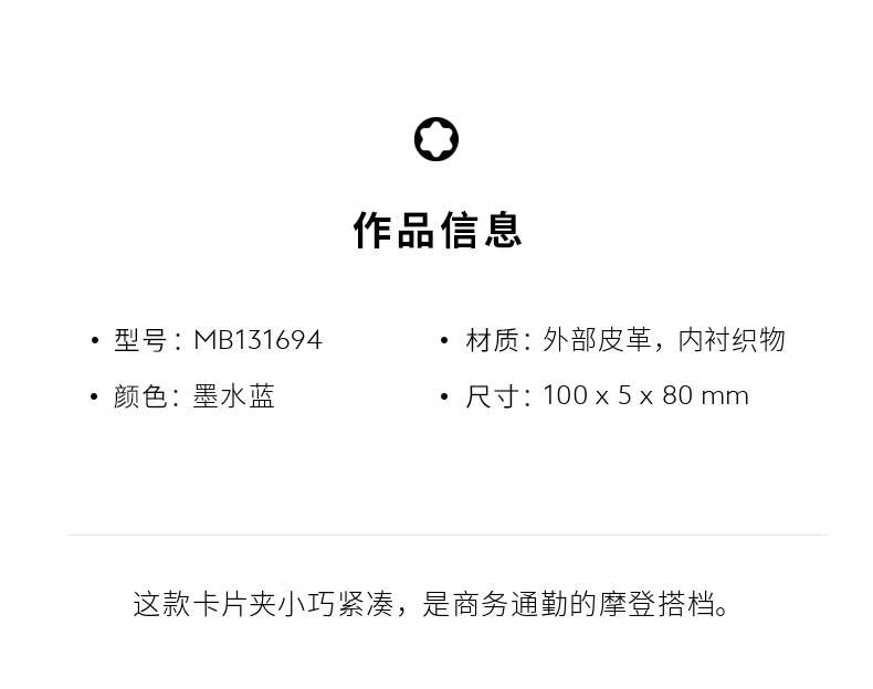万宝龙 大班系列6卡位卡片夹墨水蓝 MB131694-F .