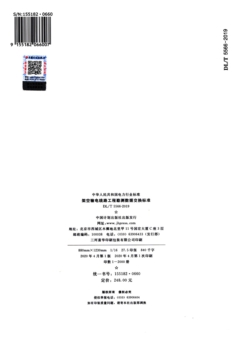 书名:DL/T 5566-2019 架空输电线路工程勘测数据交换标准