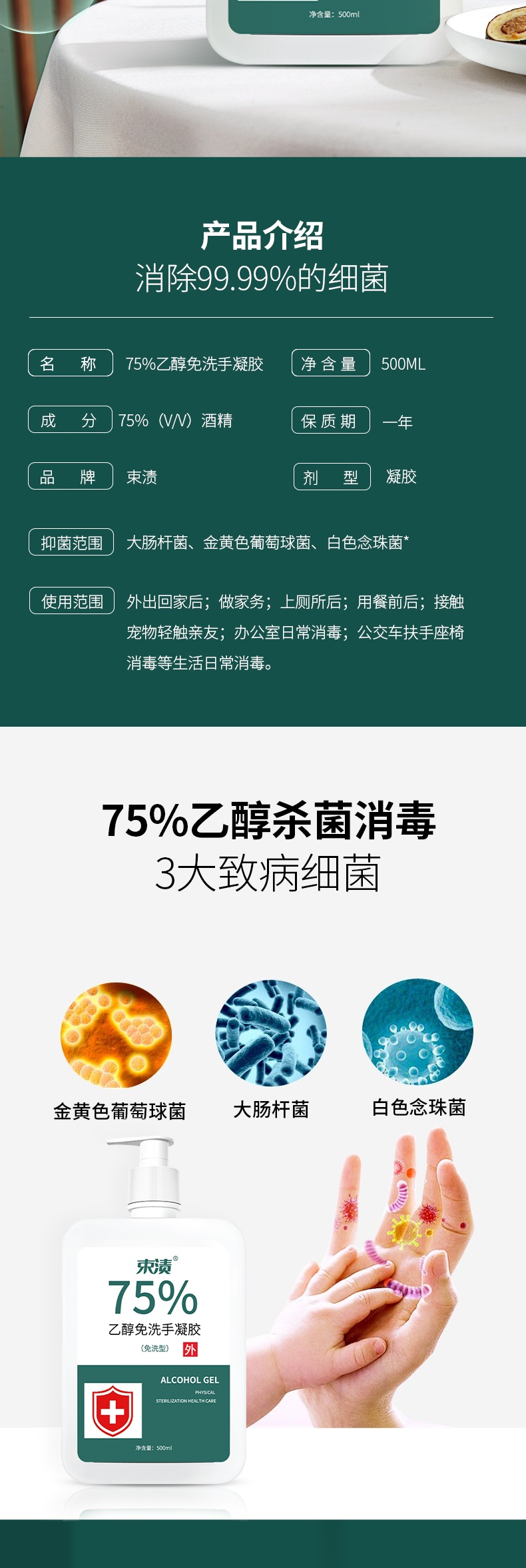 【自营】束渍-75%乙醇免洗手凝胶(500ml)免洗速干杀菌消毒便携