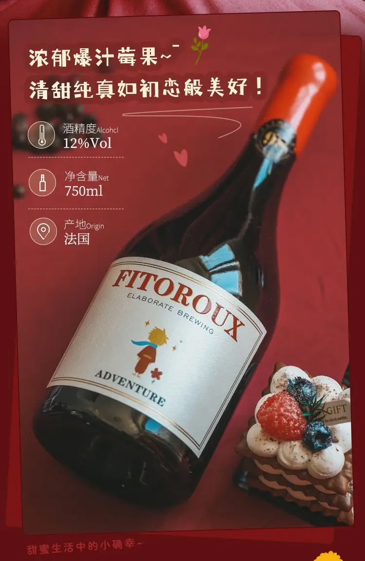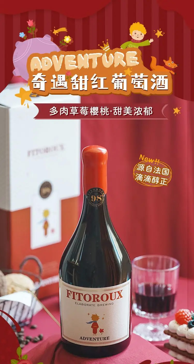 【源自法国 滴滴醇正】菲特瓦·法国奇遇甜红葡萄酒微醺晚安12%vol