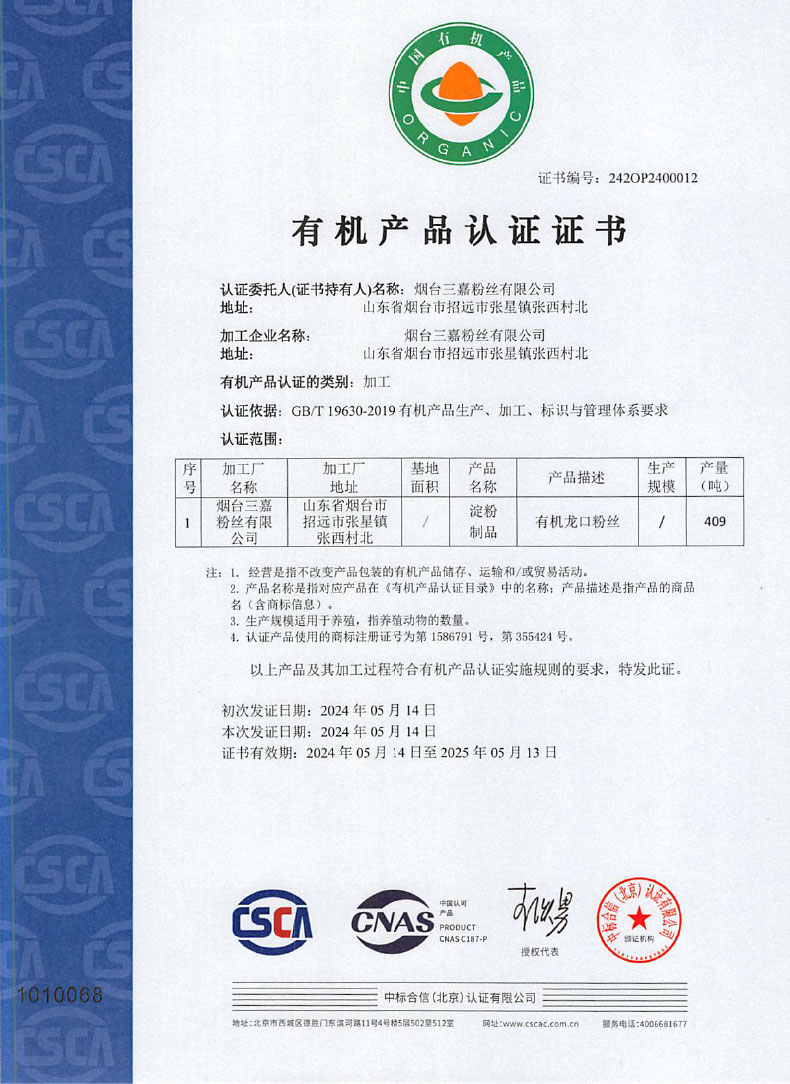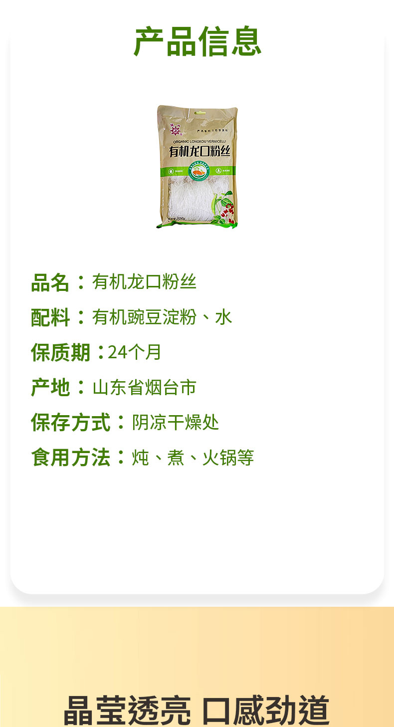 冠珠有机龙口粉丝300g地标产品有机零添加