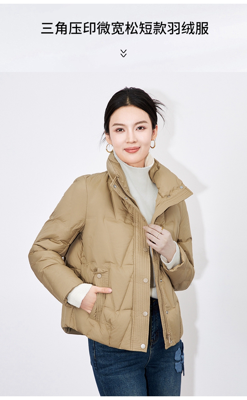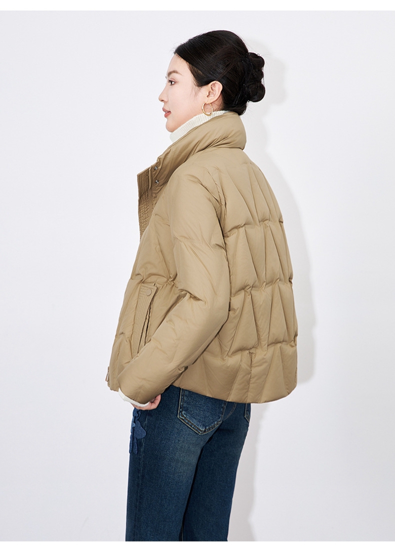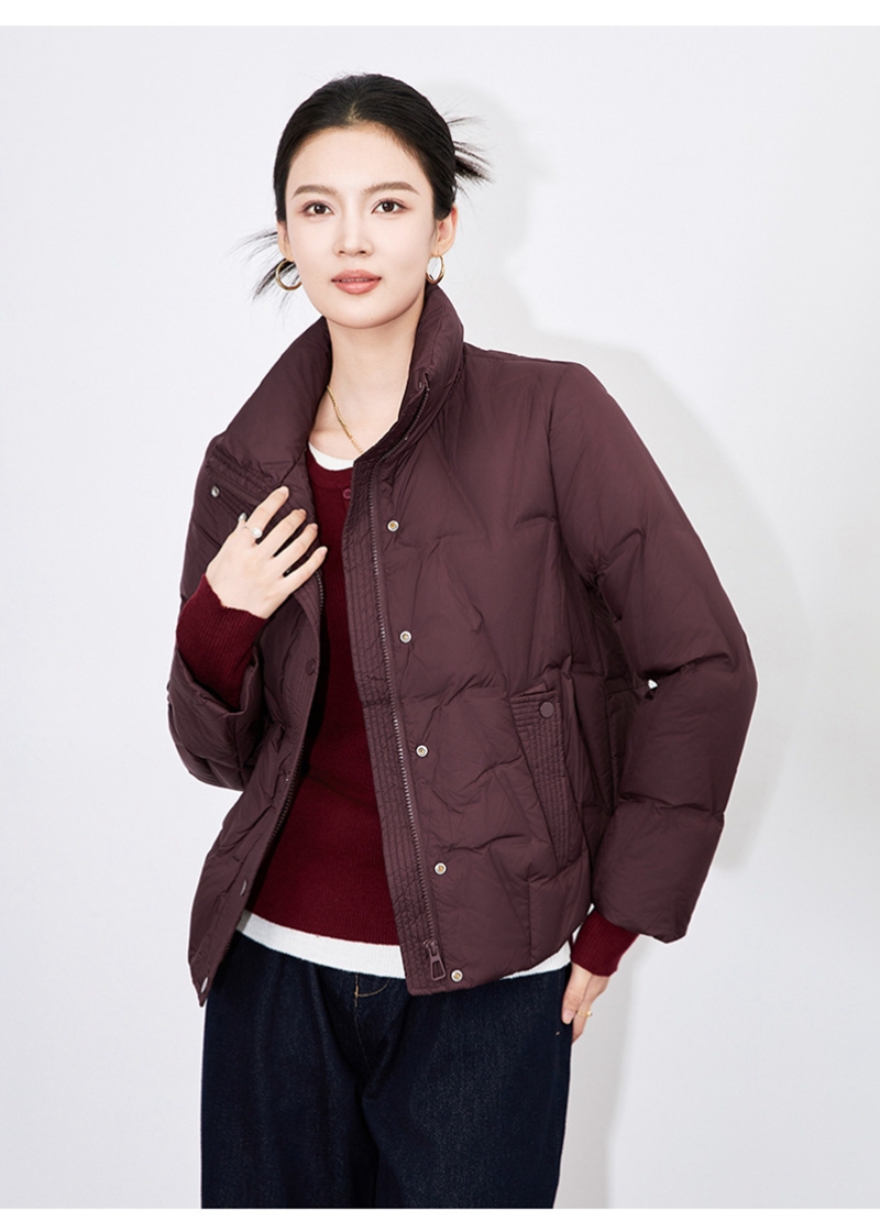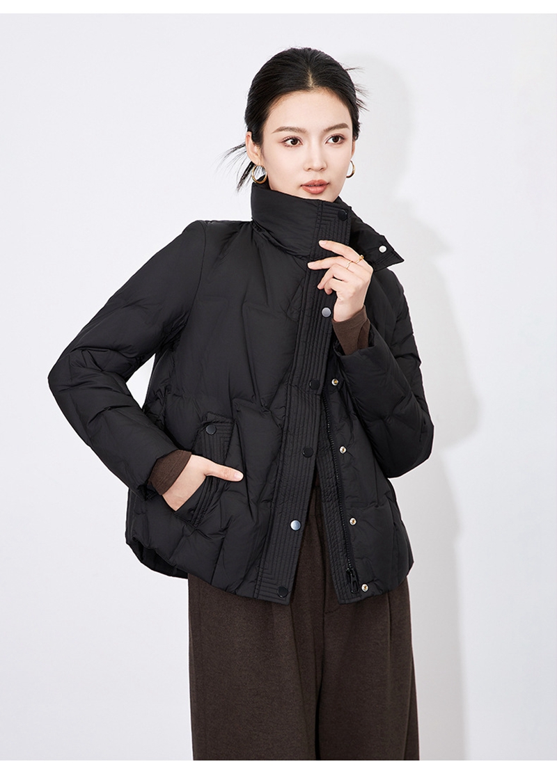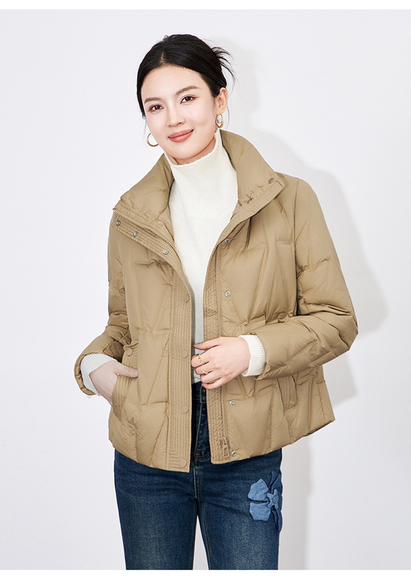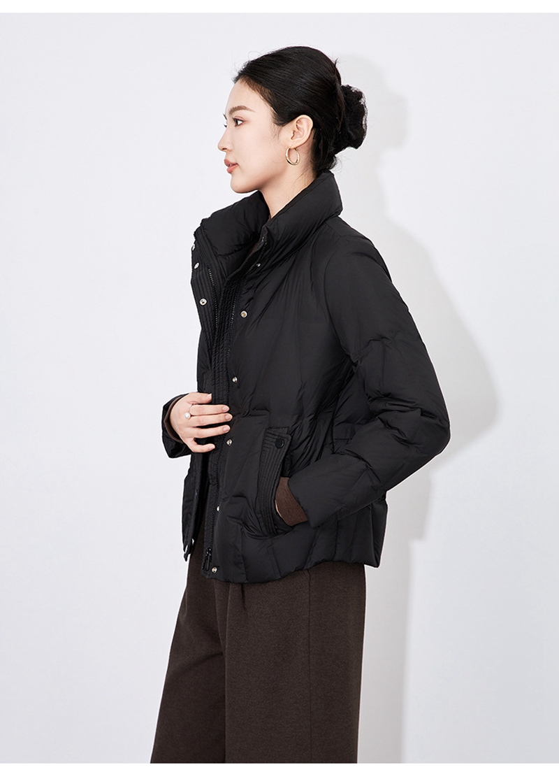 90白鸭绒立领长袖拉链单排扣短款羽绒外套
