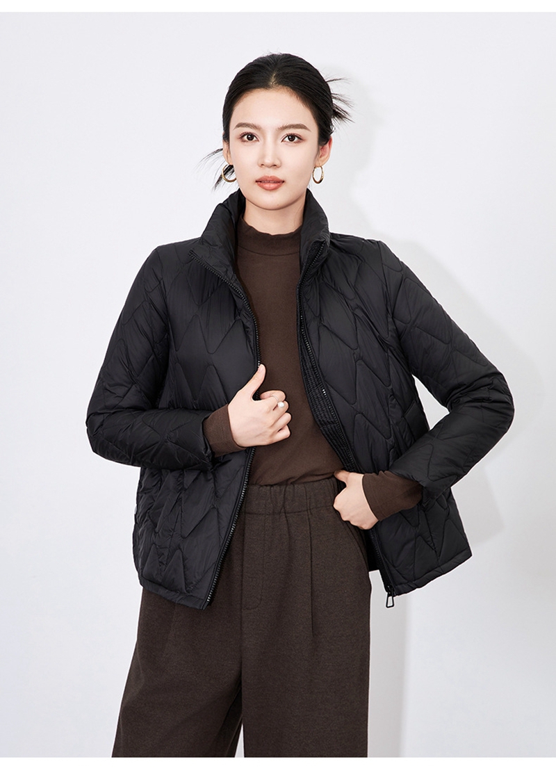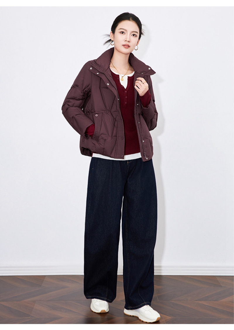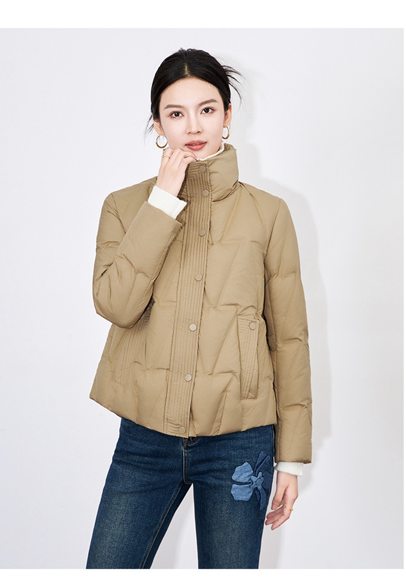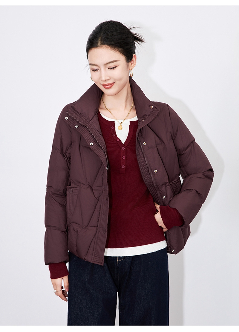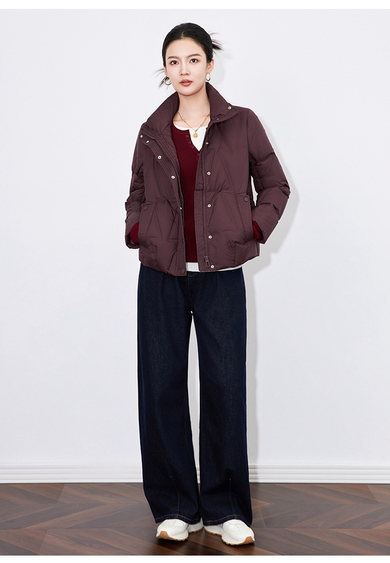 90白鸭绒立领长袖拉链单排扣短款羽绒外套