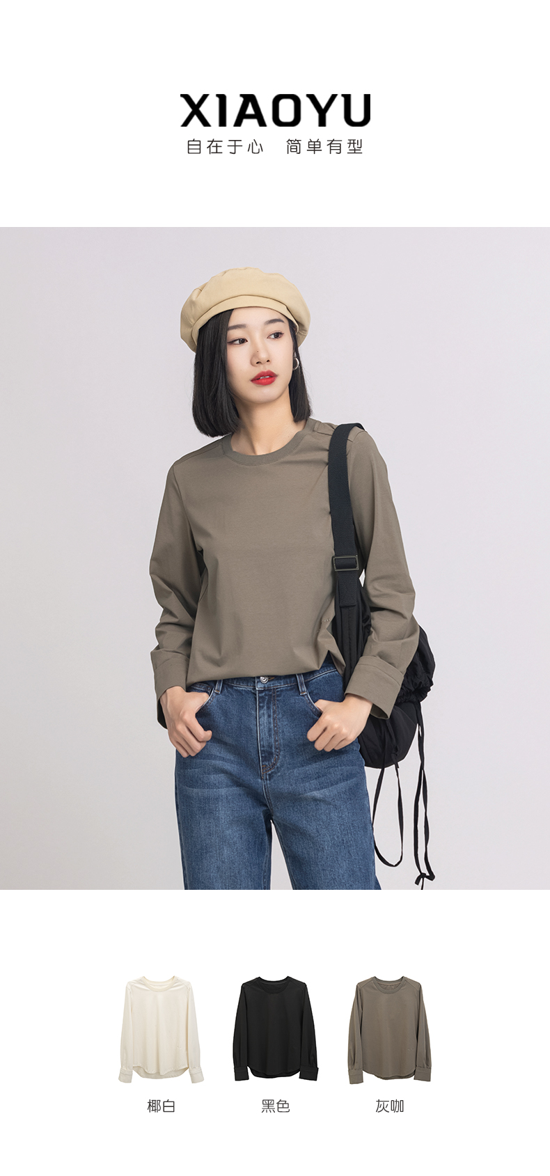 XIAOYU|圆领弧摆长袖T243SY217