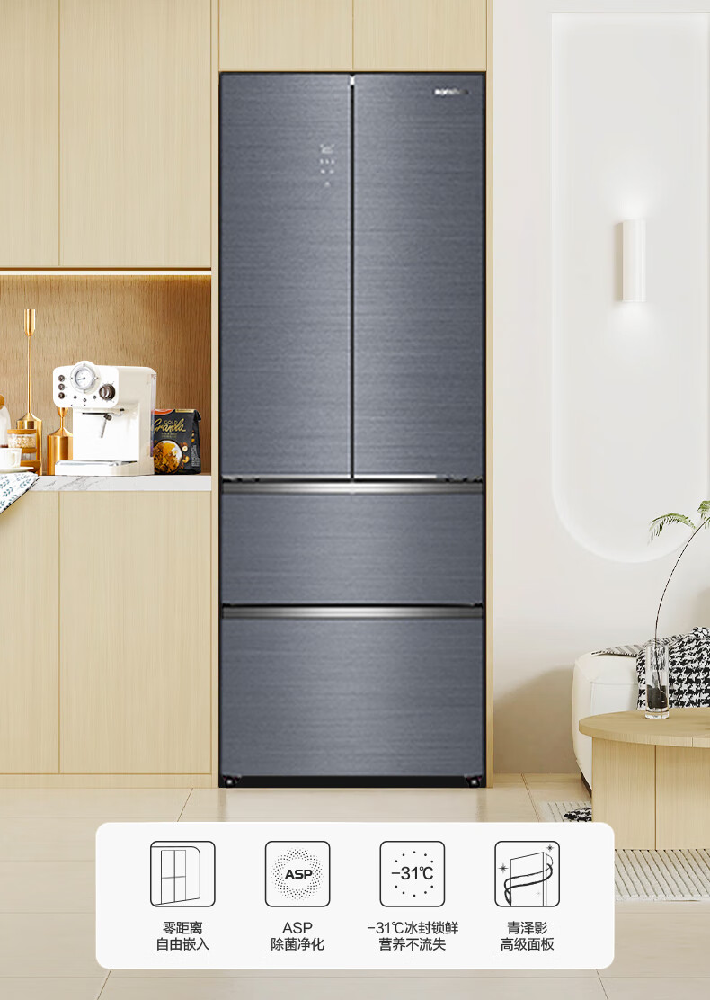 容声(Ronshen)460升法式多门四门风冷无霜双循环一级变频家用母婴净味节能可嵌入冰箱 BCD-460WKM1MPCQA青泽影