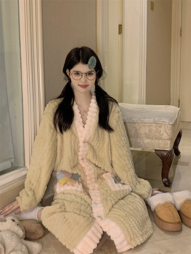 【家居百货】💖爱惨了!好乖!好甜!请全世界为我的睡衣疯狂!【彩虹居家睡袍】行走小暖炉🔥双面珊瑚绒面料 亲肤柔软细腻 精致又好看 不买套这天理难容!超级柔软超级温暖的睡衣🎂🍧🍡🧁🍦