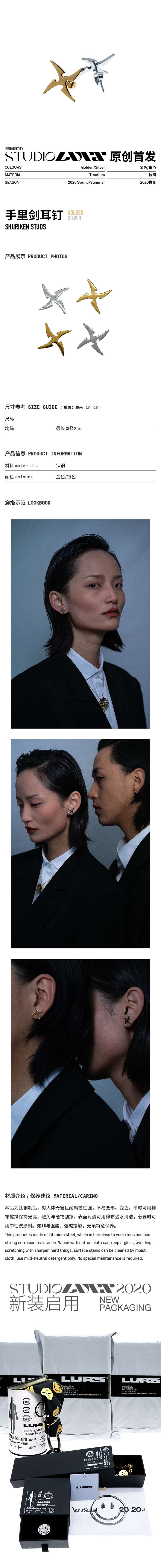 LURS爆款原创设计夏天清新百搭防过敏网红简约小巧手里剑飞镖耳钉