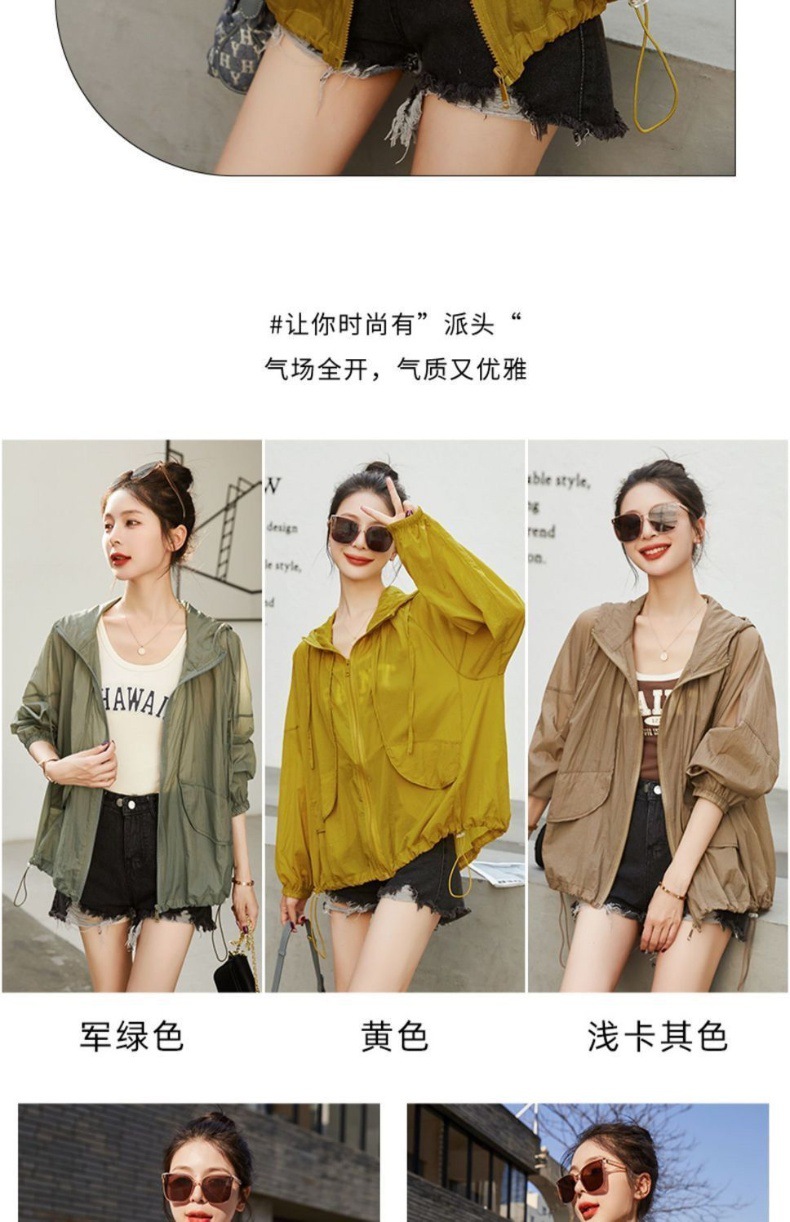 2025夏季新款防晒衣女轻薄透气外套小衫宽松连帽防晒服开衫皮肤衣妈妈防晒衣中年防晒