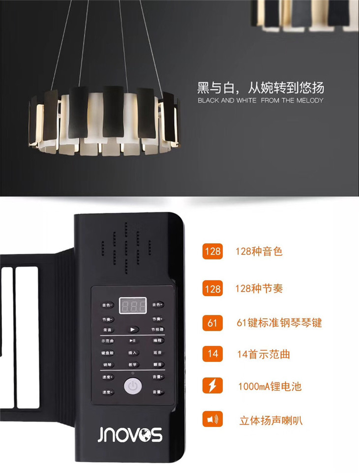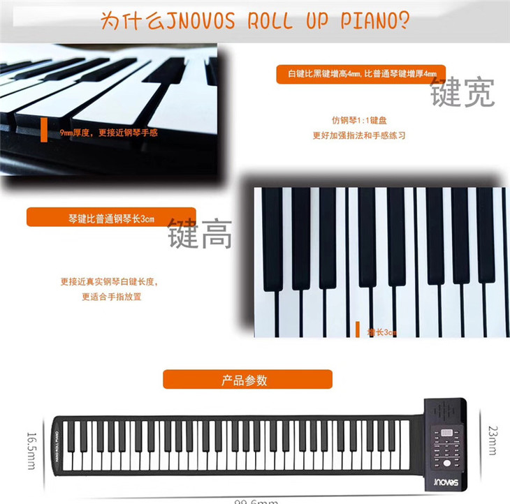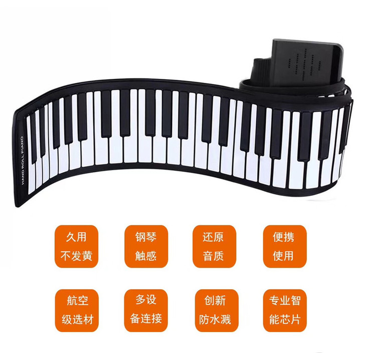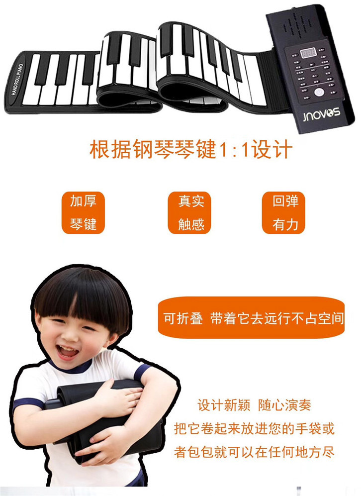 6.1秒杀积分换购 | jnovos折叠钢琴便携手卷钢琴61键电子键盘(不支持无理由退换) [福利品]