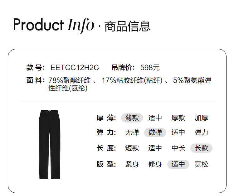 ELAND衣恋职业通勤显瘦西装长裤 EETCC12H2C