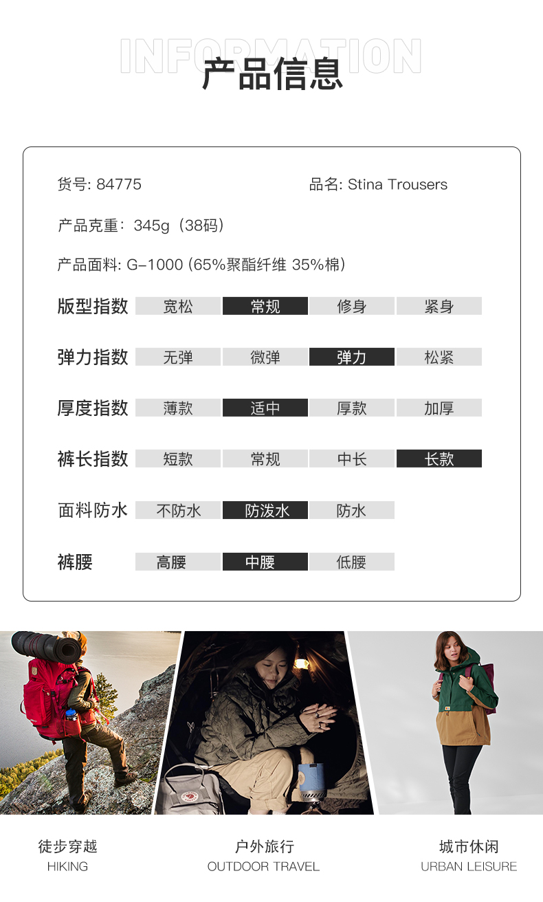 北极狐新款长裤G-1000防风耐磨时尚休闲透气裤子女 84775