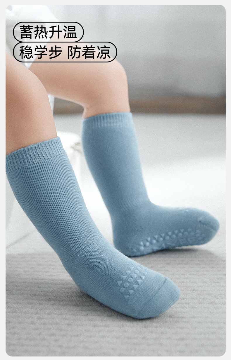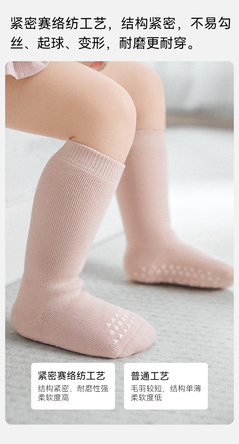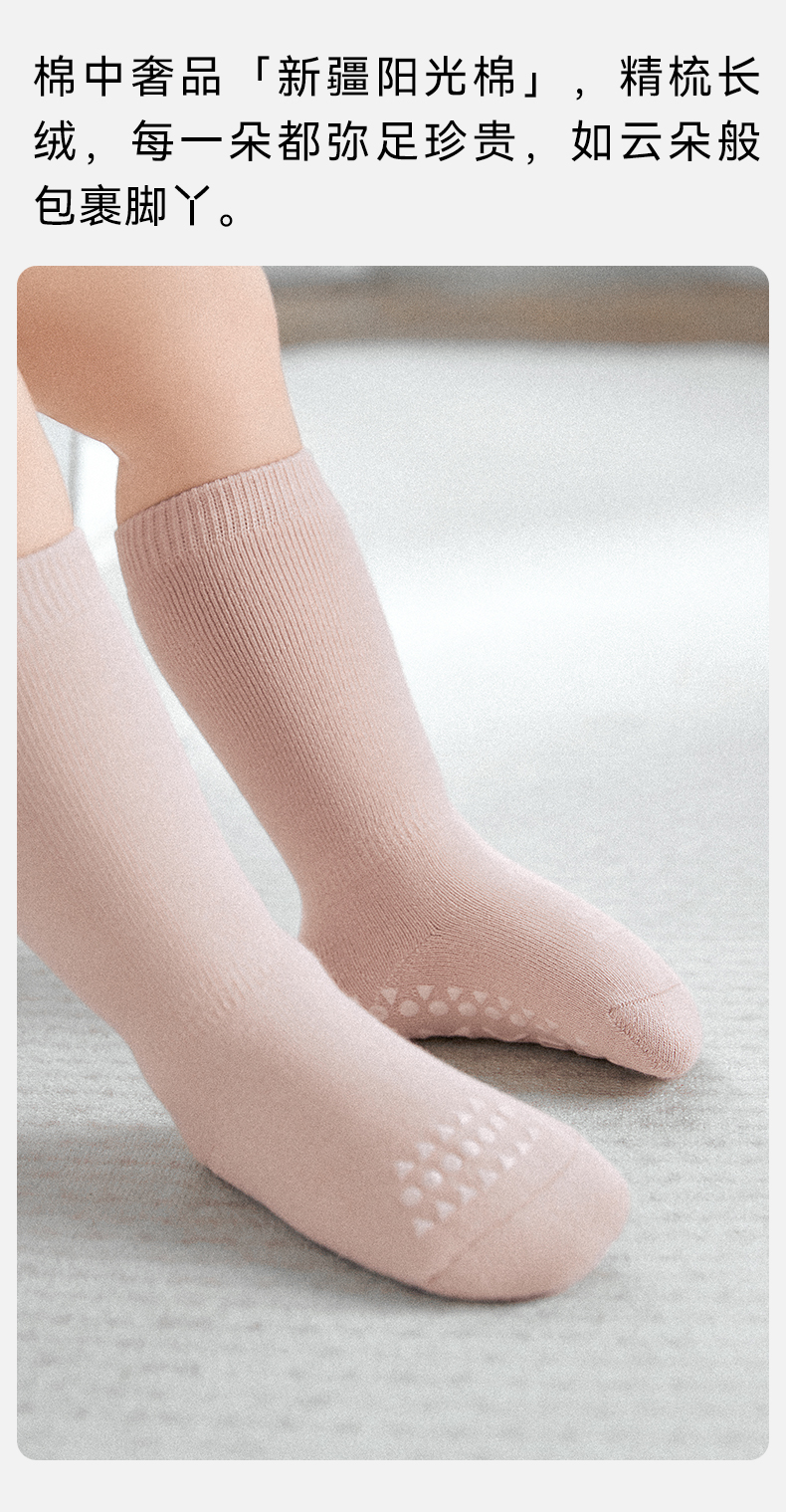 【母婴服配】嫚熙儿童春秋款地板袜防滑男女童宝宝婴幼儿纯色袜子防蚊中长筒袜