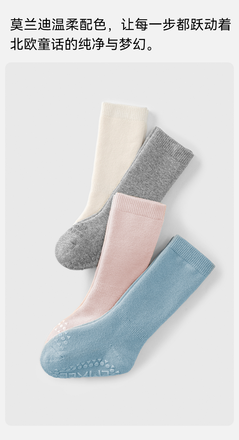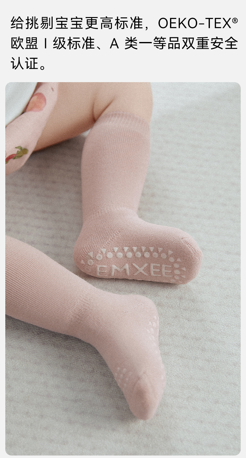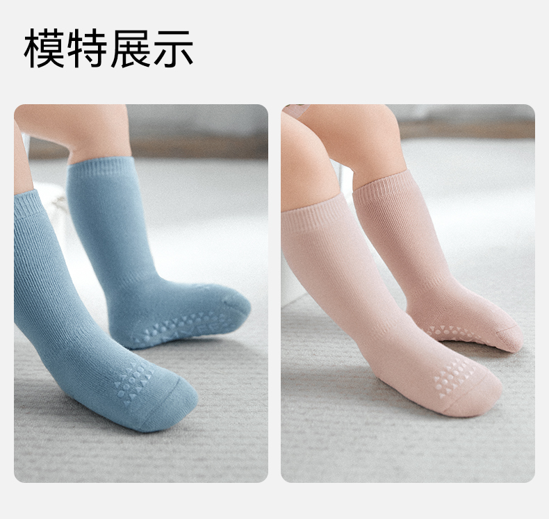 【母婴服配】嫚熙儿童春秋款地板袜防滑男女童宝宝婴幼儿纯色袜子防蚊中长筒袜