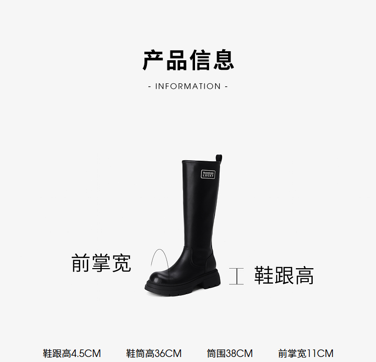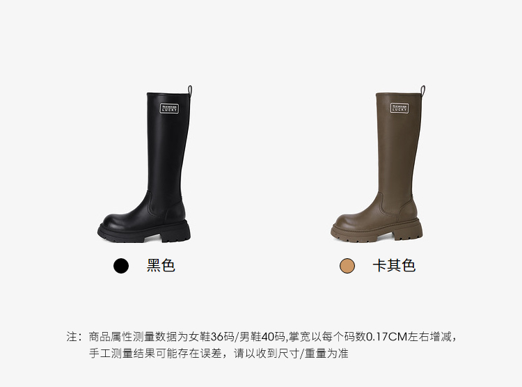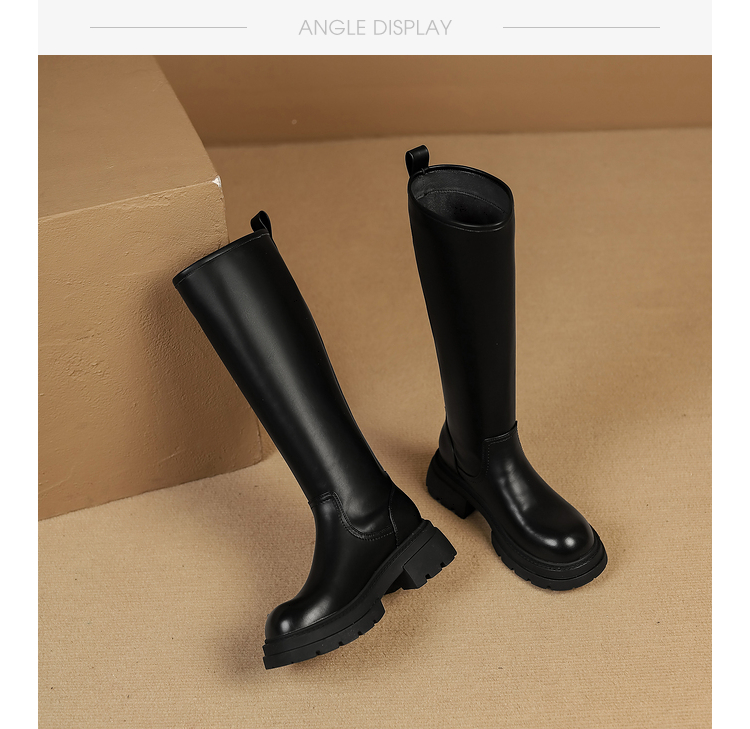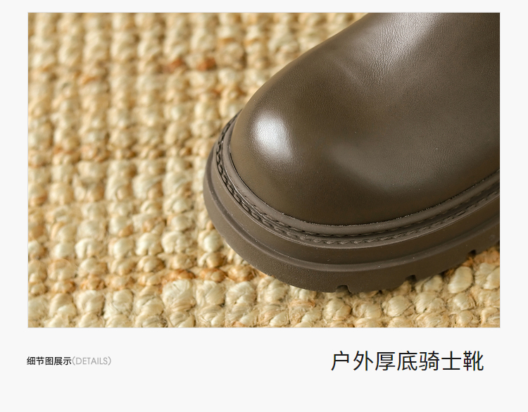 西遇厚底长筒靴女新款秋冬美式复古骑士靴黑色粗跟不过膝长靴V2133996