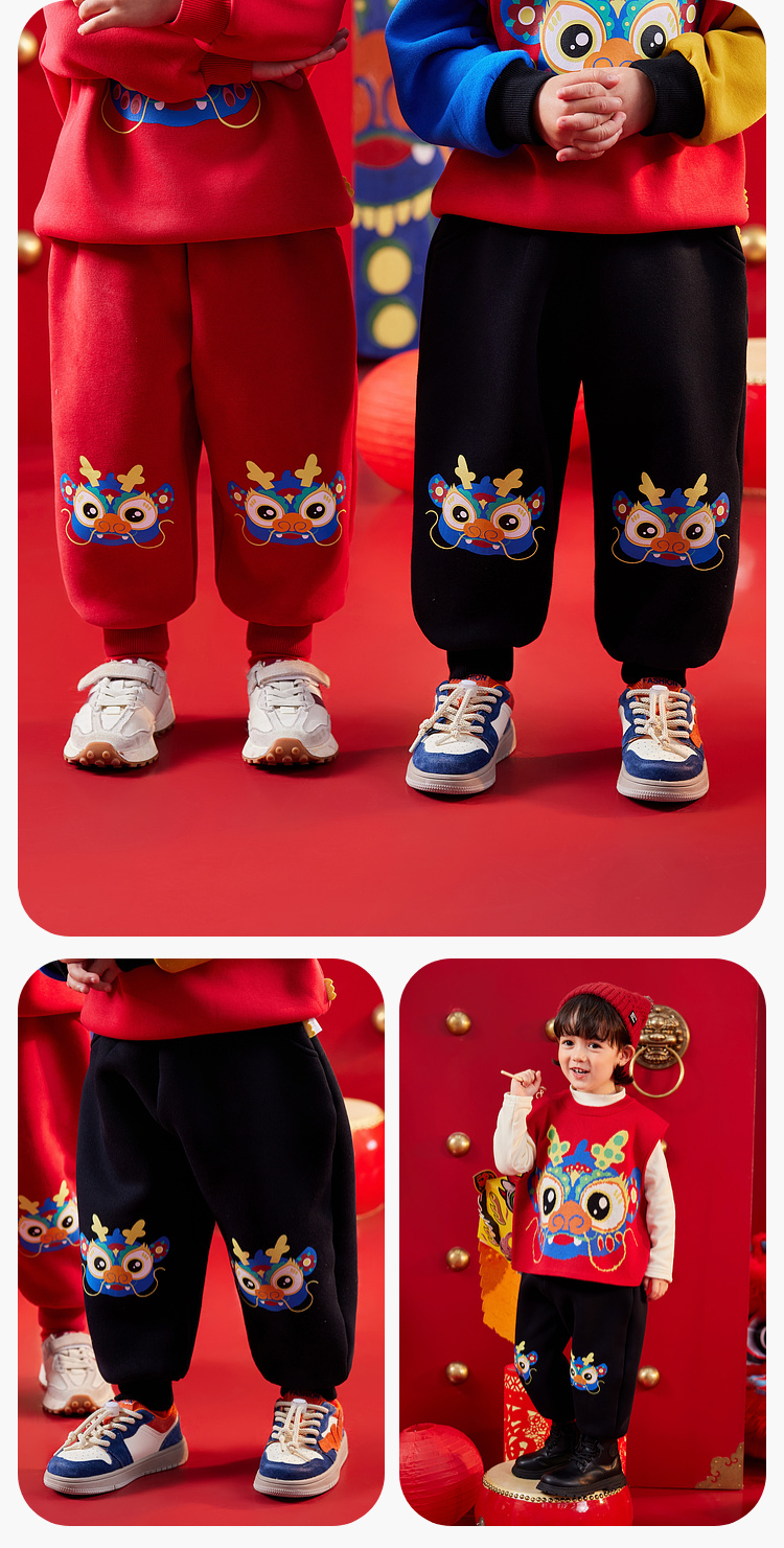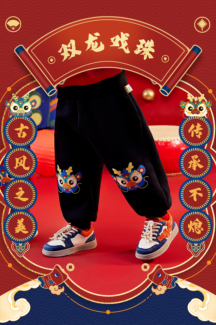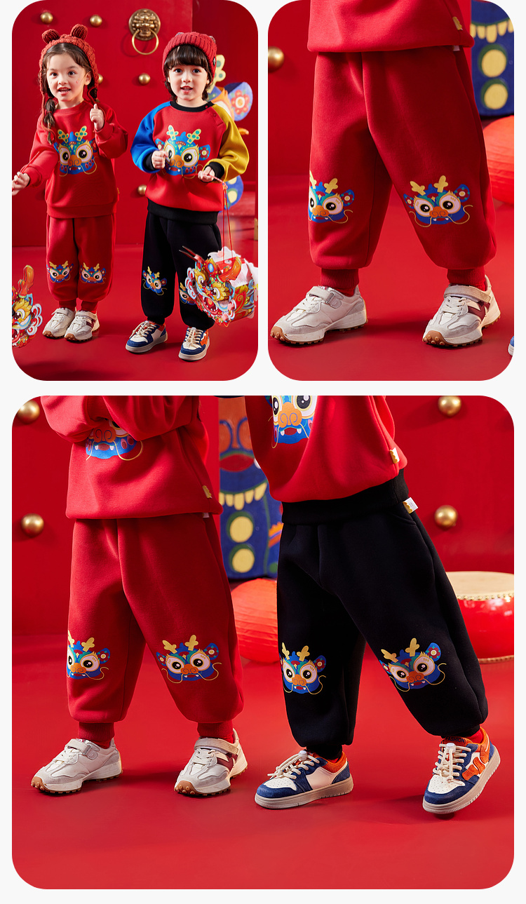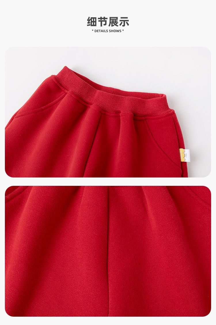 【曼龙严选】(清仓)80码,儿童男童女宝冬季拜年服卫裤加绒加厚长裤
