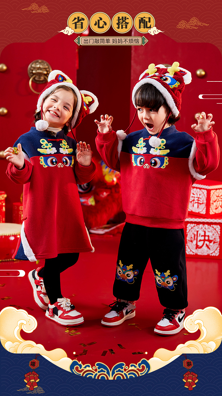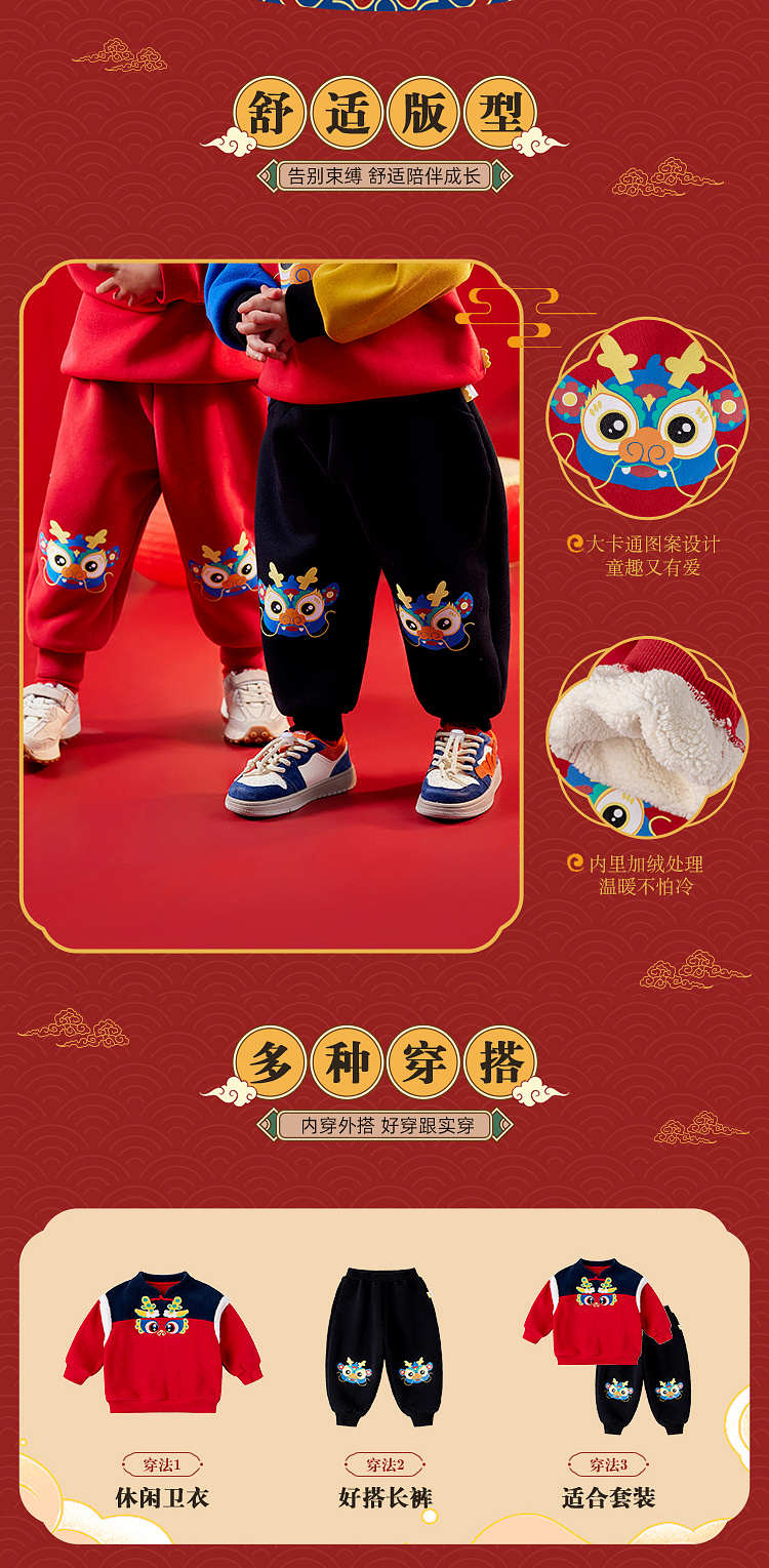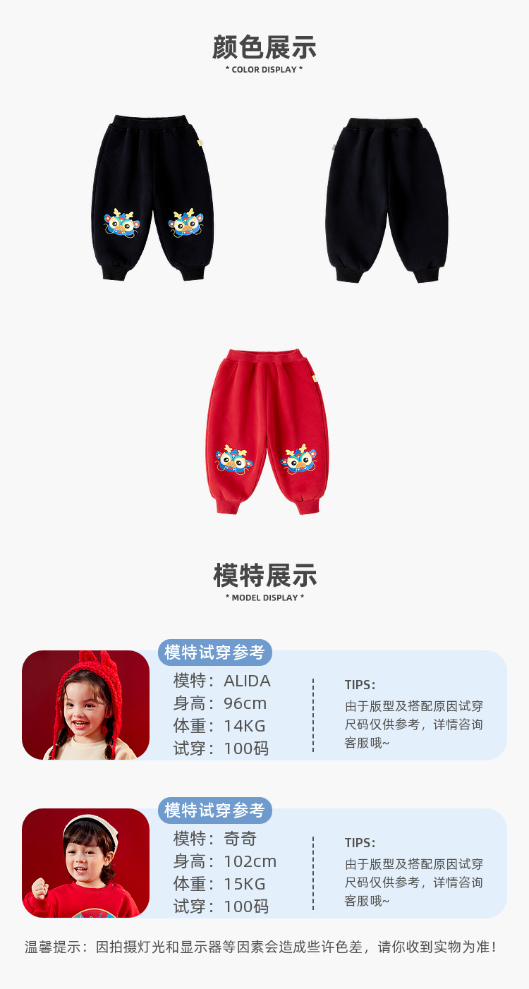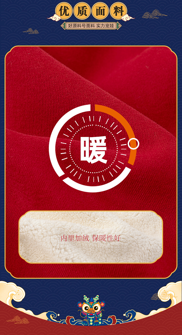 【曼龙严选】(清仓)80码,儿童男童女宝冬季拜年服卫裤加绒加厚长裤