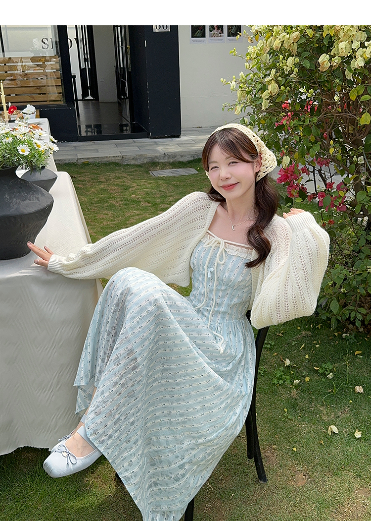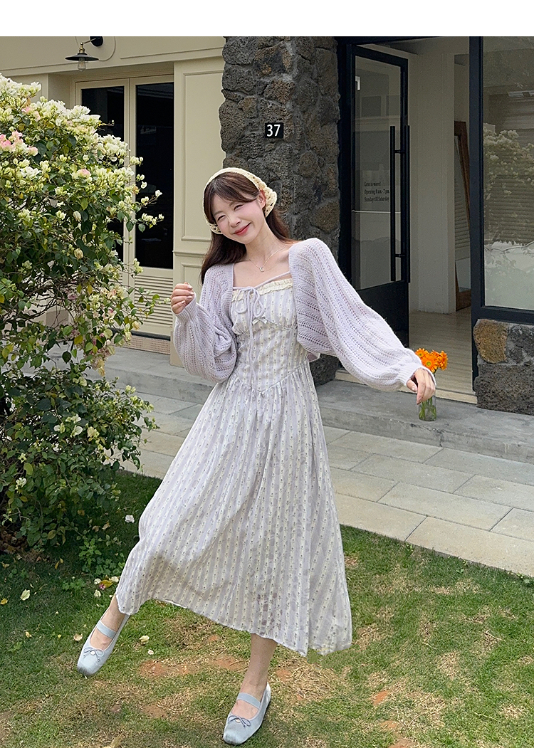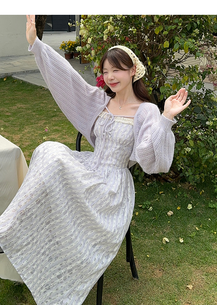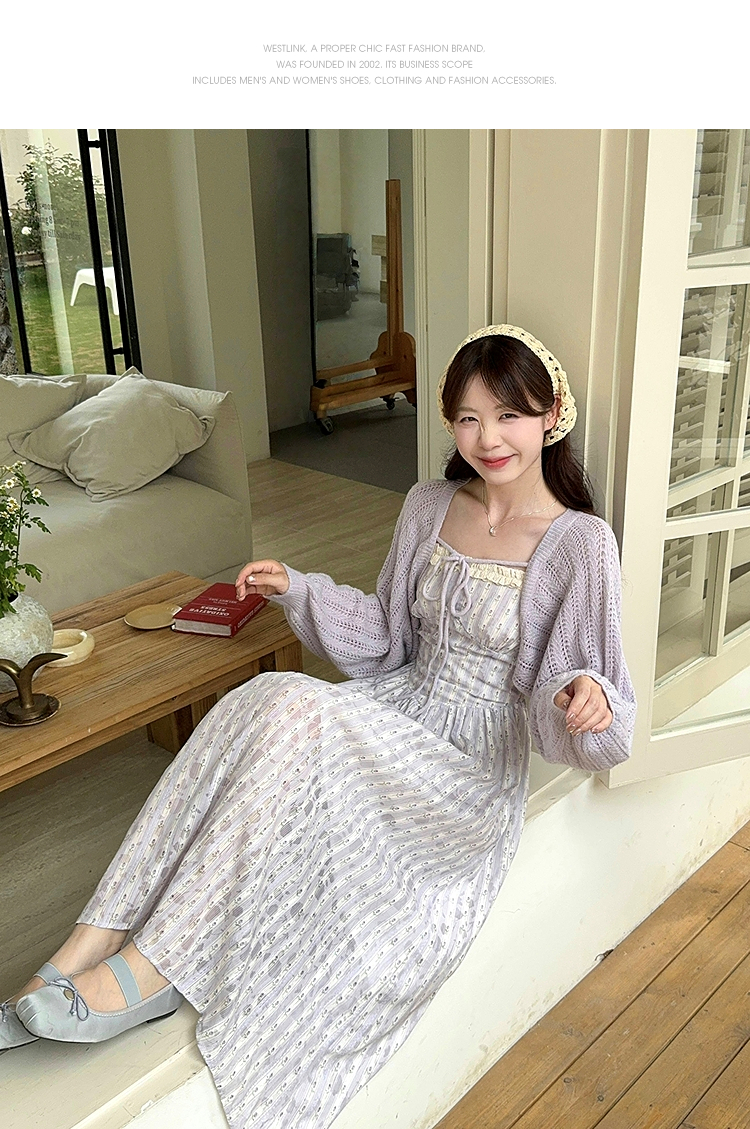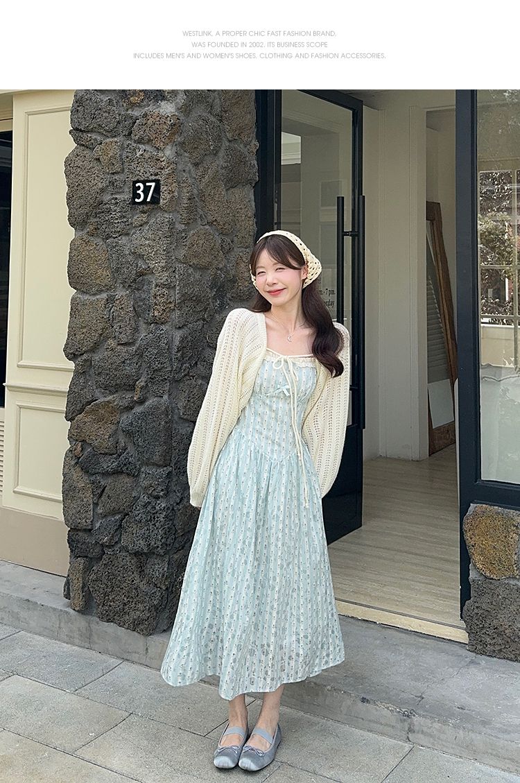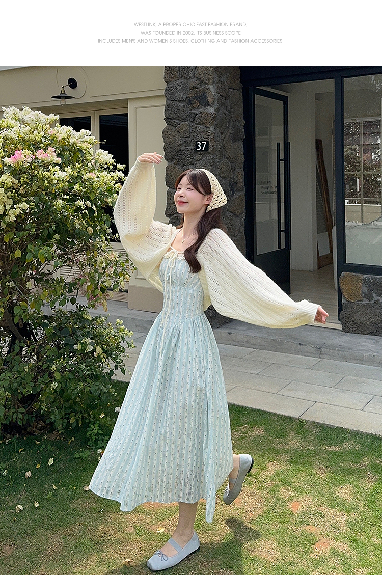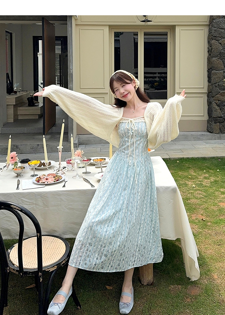 西遇法式碎花吊带裙套装女2025年夏季新款薄款空调衫上衣两件套SS050498/SS050497