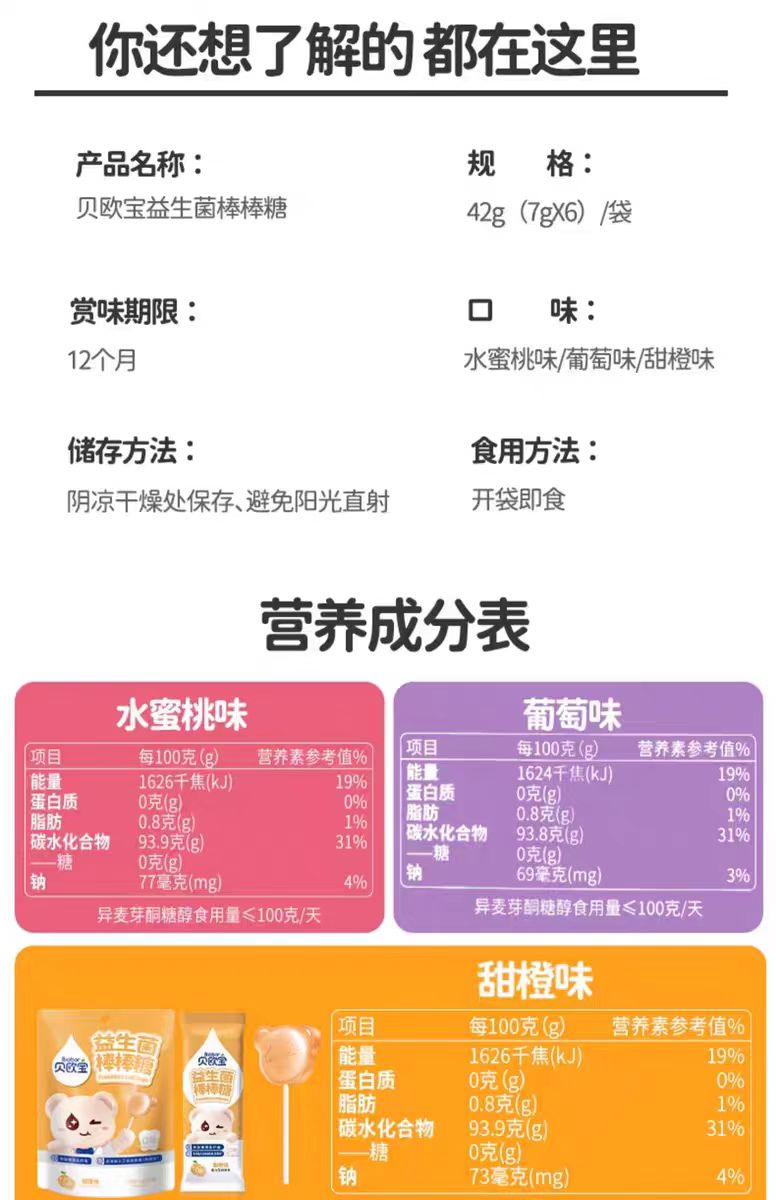 贝欧宝益生菌棒棒糖42g (6支*7g)