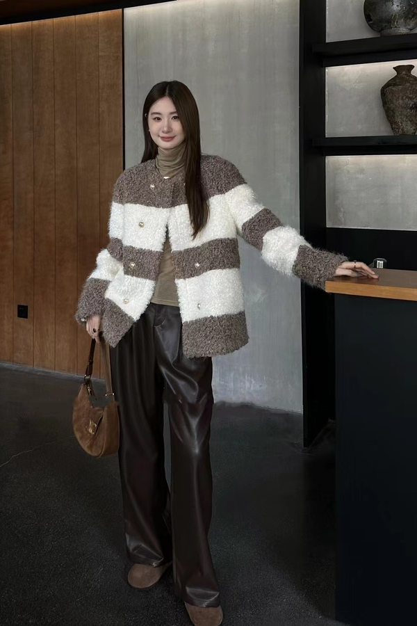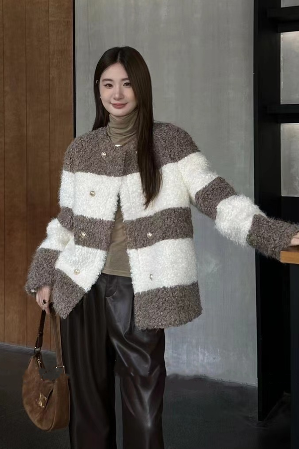 LNNNS 咖色圆领小香风毛绒外套 19879