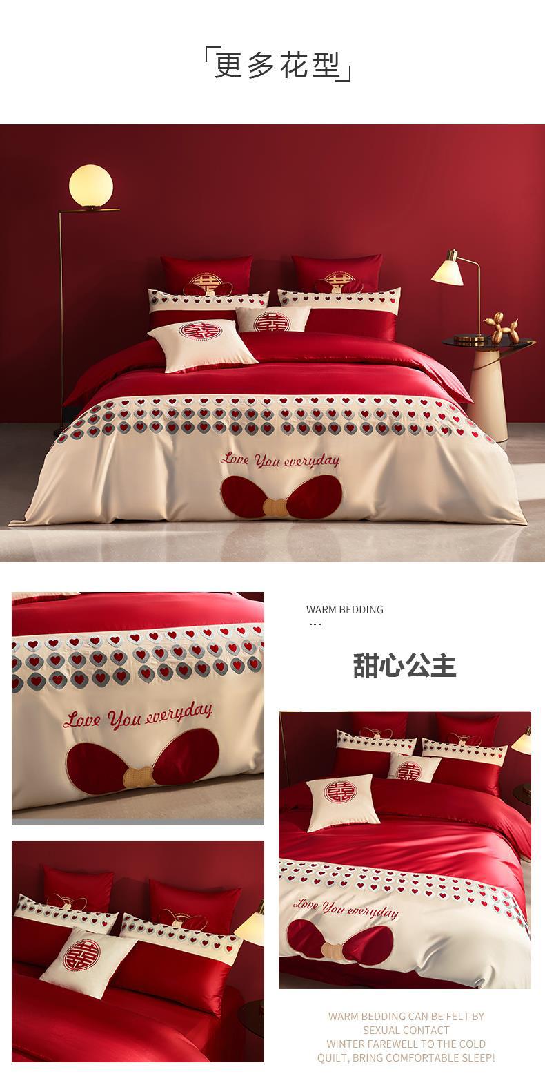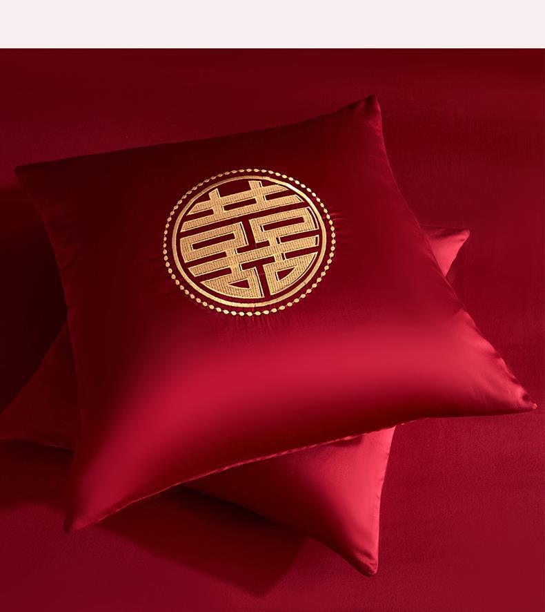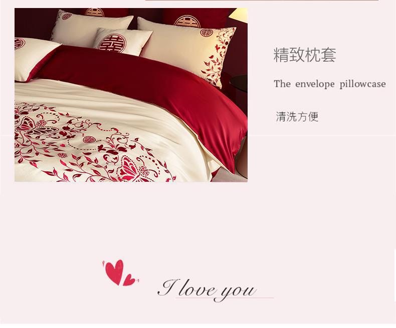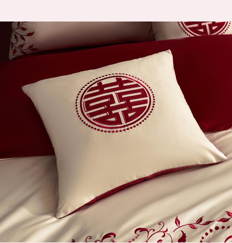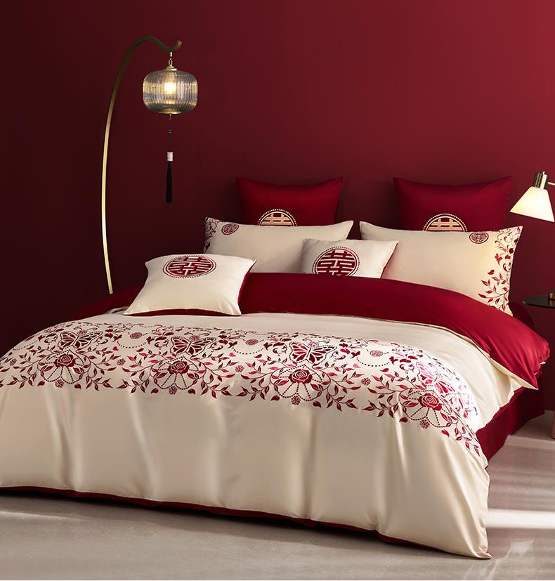 中式婚礼丨设计师力荐100s长绒棉刺绣工艺婚庆四件套酒红结婚 1.8米