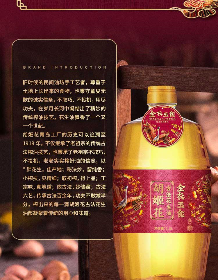 胡姬花金衣玉食古法花生油1.8L